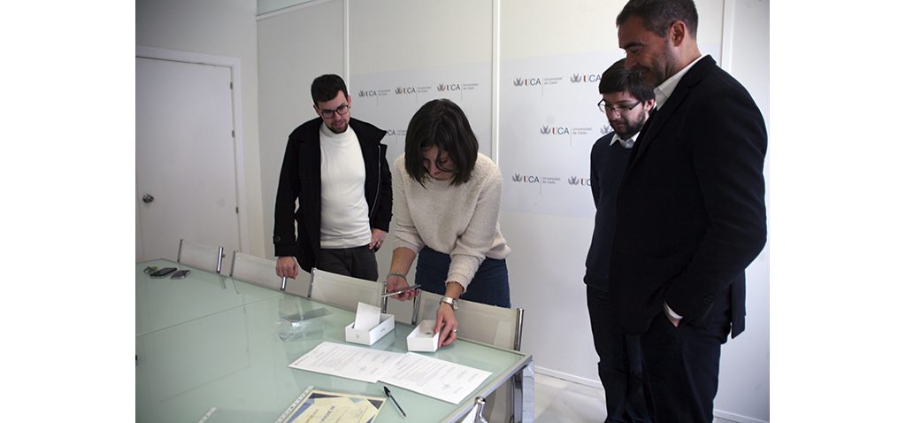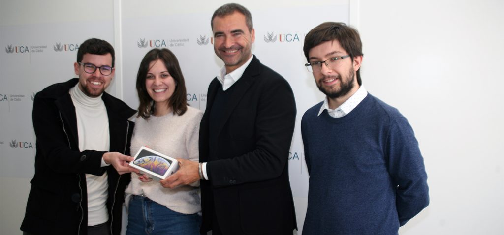Noelia Nieto Izquierdo del grado de Arquitectura Naval e Ingeniería Marítima de la Escuela de Ingeniería Naval y Oceánica de la Universidad de Cádiz es la ganadora del sorteo del iphone XR realizado por el Vicerrectorado de Transferencia e Innovación Tecnológica con motivo de la Feria de Empleo 2018. El director General de Empleo y Emprendimiento, Luis López, le ha hecho entrega hoy del smartphone en la sede del Vicerrectorado en el Hospital Real.
