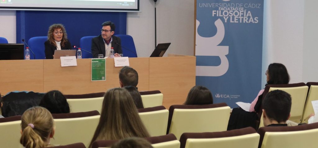 En su intervención, Carriscondo ha ofrecido una ponencia centrada en la huella de las teorías andalucistas en la formación del español de América, especialmente en el ámbito de la lexicografía hispánica. Ha invitado al alumnado a reflexionar sobre las conexiones históricas y lingüísticas entre el andaluz y el español de Hispanoamérica, subrayando que “la posición atlántica de Cádiz es una invitación natural a este tipo de estudios”. Asimismo, ha animado a profundizar en estas líneas de investigación, aún en desarrollo, que permiten tender puentes entre el pasado lingüístico andaluz y el presente del español en el ámbito internacional.