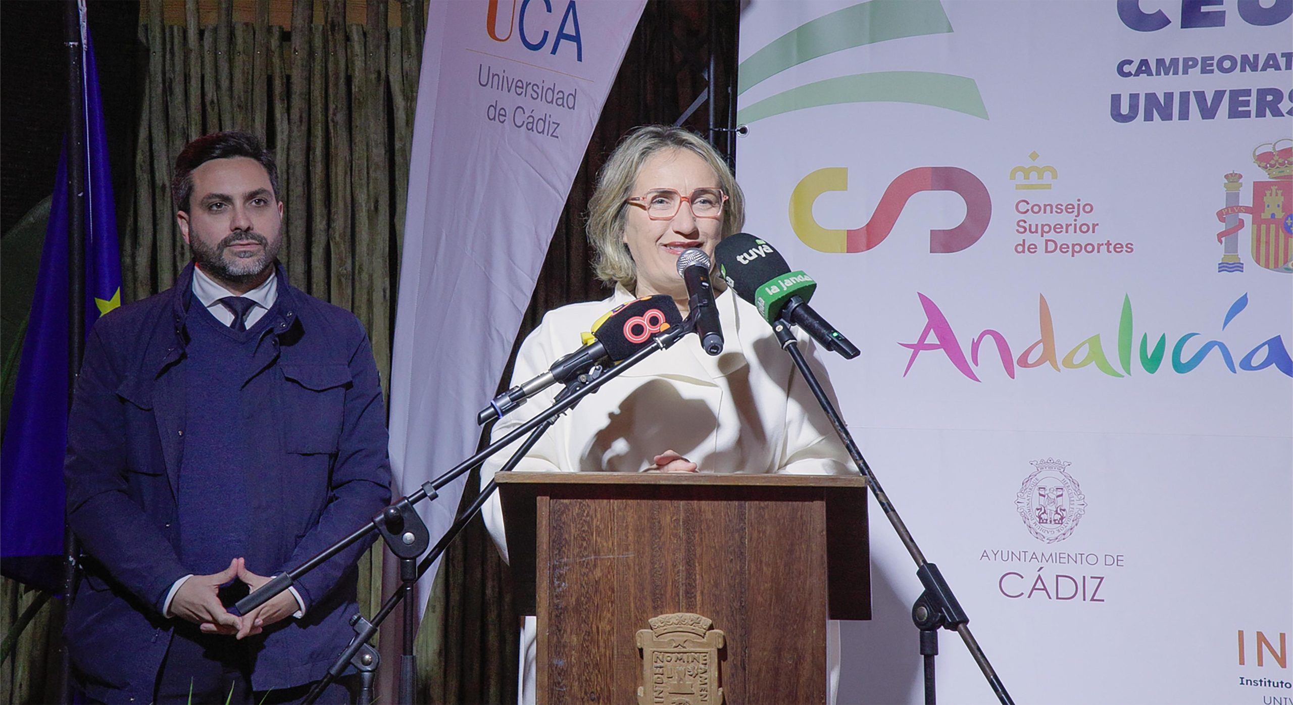 En la bienvenida institucional participaron la vicerrectora de Estudiantes de la Universidad de Cádiz, Nuria Campos, el alcalde de Vejer de la Frontera, Antonio González Mellado, y Julio Conde, director del secretariado del campus náutico y Rafael Rivas, director técnico del ADE. Todos coincidieron en resaltar la importancia de estas competiciones para la visibilidad del deporte universitario y para el impulso del surf y el parasurf en Andalucía. Igualmente, se llevó a cabo un desfile, donde cada universidad contó con su abanderado y se produjo la comunión entre los equipos participantes, al juntar la arena de cada playa de procedencia en una misma urna.