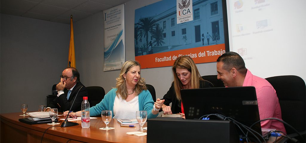 La Facultad de Ciencias del Trabajo de la Universidad de Cádiz, los departamentos de Derecho del Trabajo y de la Seguridad Social y de Derecho Mercantil de la UCA, el Consejo Social de la Universidad de Cádiz y el Campus de Excelencia Internacional Global del Mar CEI·Mar organizan hoy jueves 16 y mañana viernes 17 de mayo eI I Congreso de Derecho Marítimo con la colaboración de la Autoridad Portuaria de la Bahía de Cádiz. La secretaria General en funciones de la UCA, Francisca Fuentes, junto al alcalde de la ciudad, José María González, la presidenta de la APBA, Teófila Martínez, la decana del centro, Socorro Montoya, y el coordinador del Congreso, Juan Luis Pulido, han presidido el acto de bienvenida en el aula Magna del centro con la asistencia de más de 120 personas que han completado su aforo para tratar sobre el pasado, presente y futuro del mar.