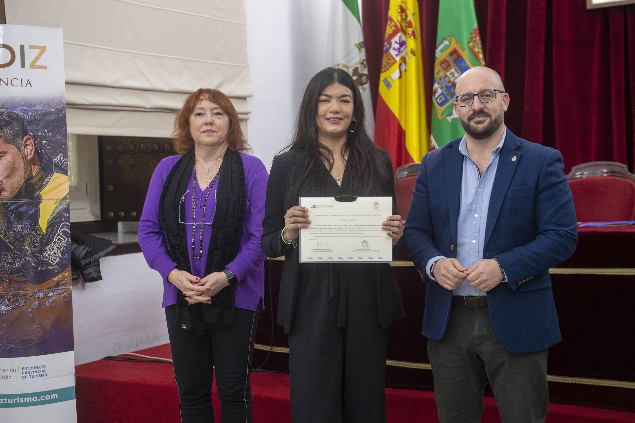 El Patronato Provincial de Turismo de la Diputación de Cádiz y la Universidad de Cádiz han entregado esta mañana sus III Premios Aura a la excelencia investigadora en materia turística. Se trata de la tercera edición de estos galardones promovidos conjuntamente por la UCA y el Patronato de Turismo. El acto, celebrado en el Palacio de la Diputación Provincial, ha estado presidido por el vicepresidente cuarto de la Diputación y responsable del Patronato Provincial de Turismo, Germán Beardo, y por la vicerrectora en funciones de Política Educativa de la UCA, Eva Garrido. Asimismo, ha contado con la presencia del director del departamento de Historia y Geografía de la UCA, Manuel Arcila, quien ha conducido la entrega de galardones.