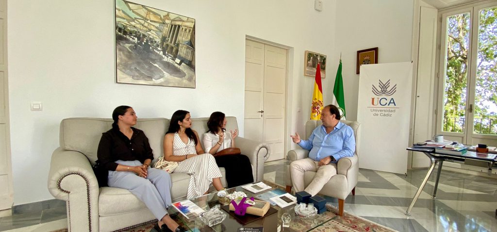 Las integrantes del equipo, Ana Lores López, Yasmina Ferreira Gómez y Natalia Andrea Torres Galindo, le han contado su experiencia en la participación en este evento y le han agradecido, como máximo representante, el apoyo que la Universidad de Cádiz ha ofrecido a esta iniciativa.
