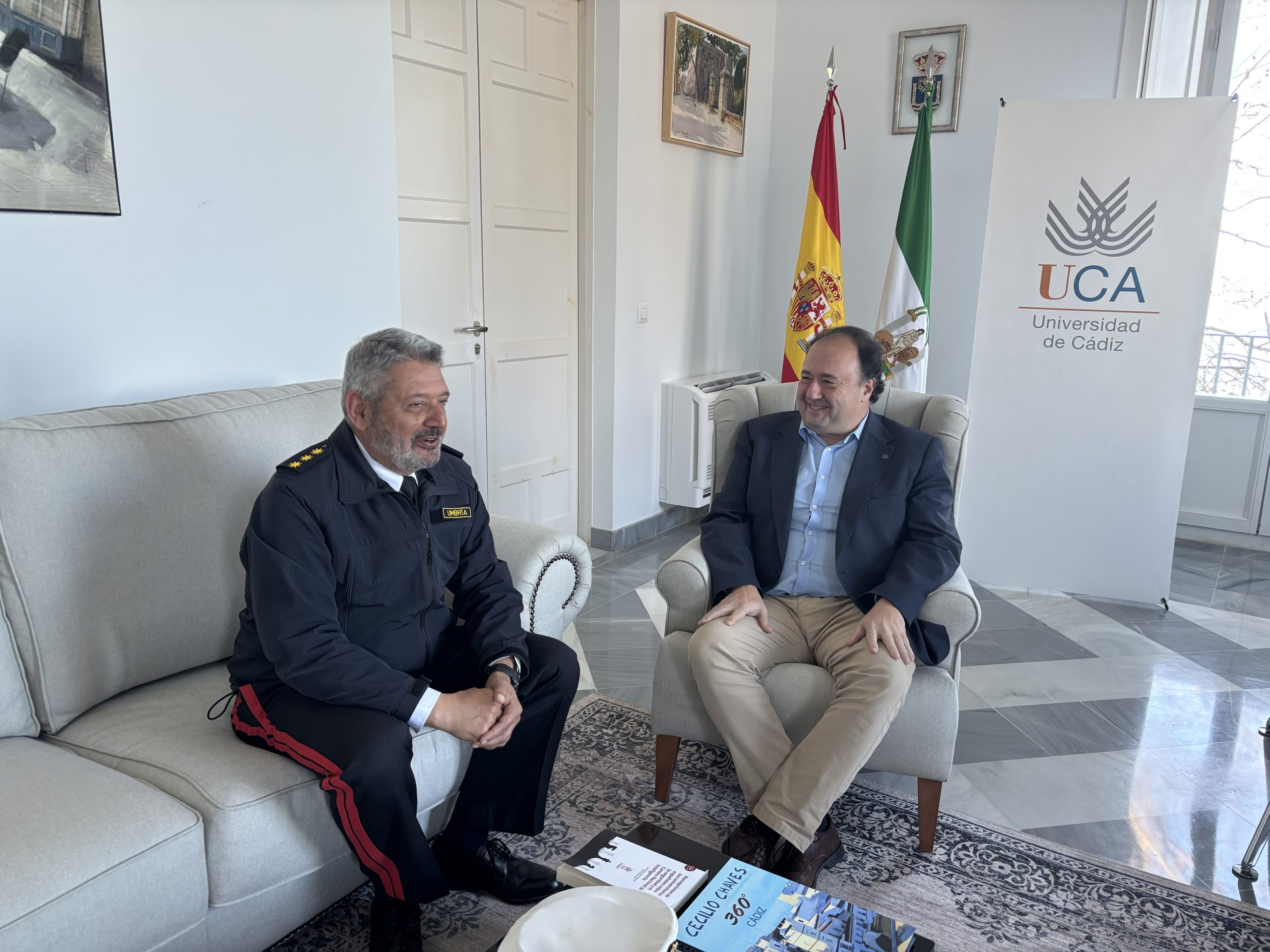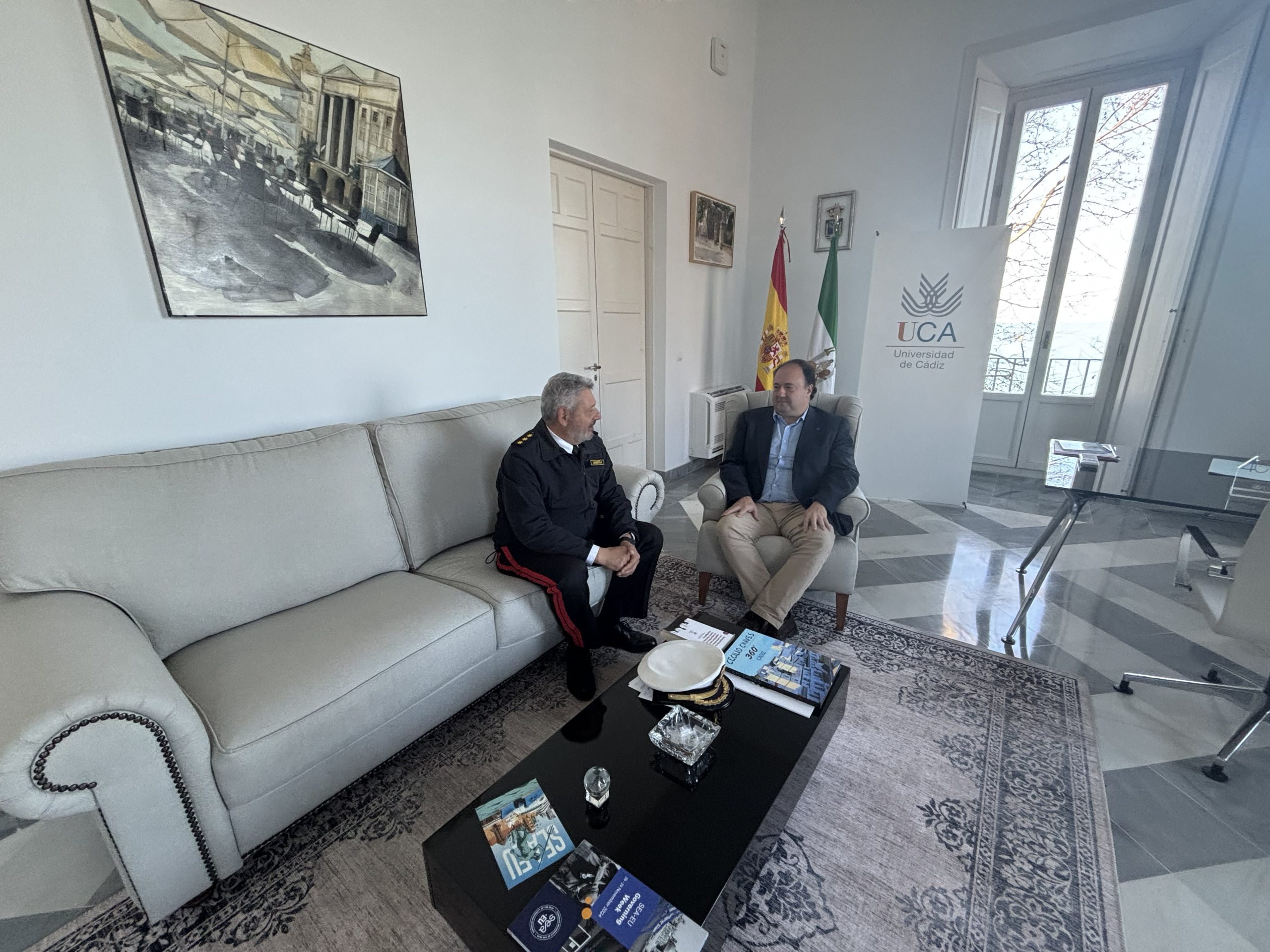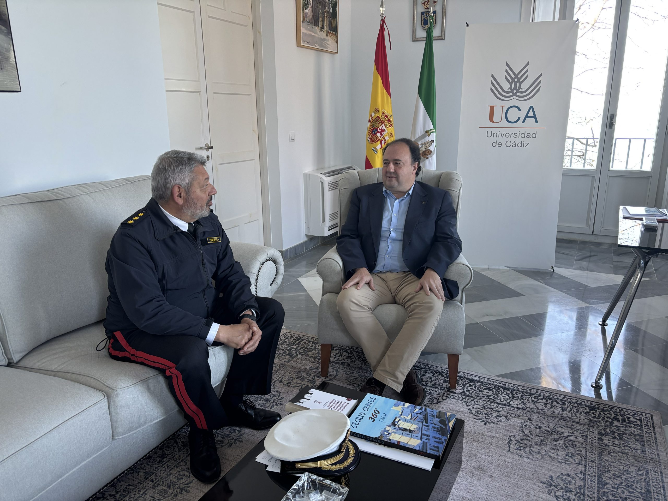 El rector de la Universidad de Cádiz, Casimiro Mantell, ha recibido este viernes en su despacho al subdelegado de Defensa en Cádiz, el coronel Ángel Javier Umbría, en una primera reunión institucional.