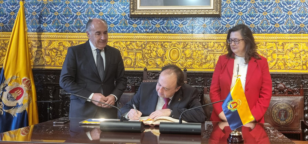 Al término del encuentro con los medios, se ha desarrollado una recepción oficial de la Corporación Municipal al rector de la UCA en el salón de Plenos del Ayuntamiento, en donde ha firmado en el Libro de Honor de la ciudad.