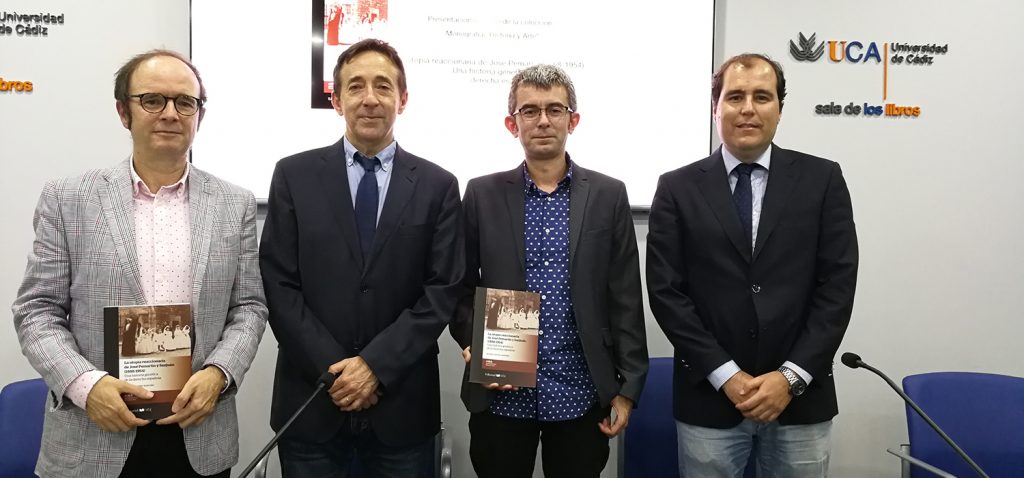 La Universidad de Cádiz ha presentado estos días en la sala de los Libros del edificio Andrés Segovia en el Campus de Cádiz y en la Fundación Caballero Bonald en Jerez de la Frontera el último libro del sello Editorial UCA: La Utopía reaccionaria de José Pemartín y Sanjuán (1888-1954). A las presentaciones asistieron Eduardo Vijande Vila, director de la colección Monografía Historia y Arte, Josefa Parra Ramos directora de Actividades de la Fundación Caballero Bonald, Francisco Vázquez García, prologuista del libro, Álvaro Castro Sánchez, autor del libro, y José Marchena, director General de Extensión Cultural y Servicio de Publicaciones de la UCA.