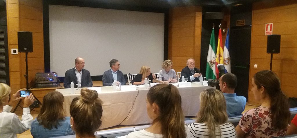 La vicerrectora de Responsabilidad Social, Extensión Cultural y Servicios de la Universidad de Cádiz, Teresa García, junto a la alcaldesa de Jerez, Mamen Sánchez, el director gerente de la Real Escuela Andaluza del Arte Ecuestre, Juan Carlos Camas, el decano de la Facultad de Ciencias Sociales y de la Comunicación, Jesús Rodríguez Torrejón, y el coordinador del seminario, Antonio Arcas de los Reyes, han inaugurado el seminario de los XXIII Cursos de Otoño de la UCA en Jerez denominado Turismo a Caballo y Turismo del Caballo, dinamizadores económicos de la Ciudad de Jerez en la Fundación de la Real Escuela Andaluza del Arte Ecuestre.