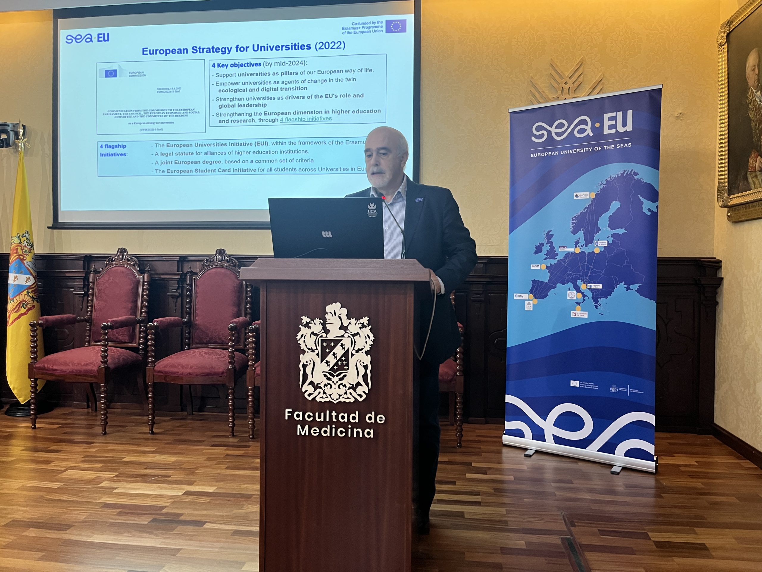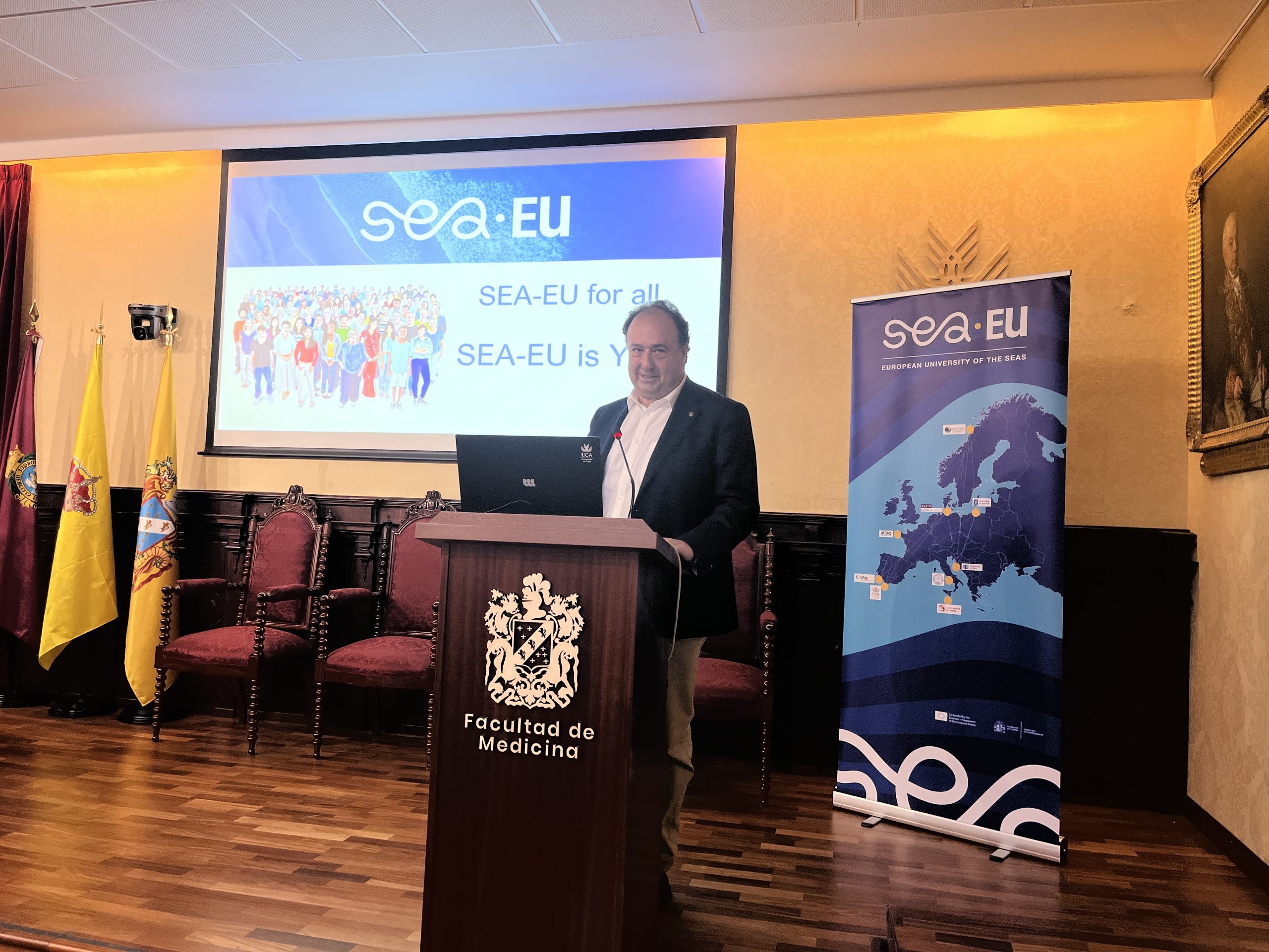 Para clausurar el acto, el rector de la Universidad de Cádiz, Casimiro Mantell, intervino mostrando su apoyo al consorcio SEA-EU, “una alianza que es una prioridad para la UCA”. El rector recalcó la importancia de SEA-EU para impulsar la internacionalización y “reforzar la colaboración entre instituciones educativas”.