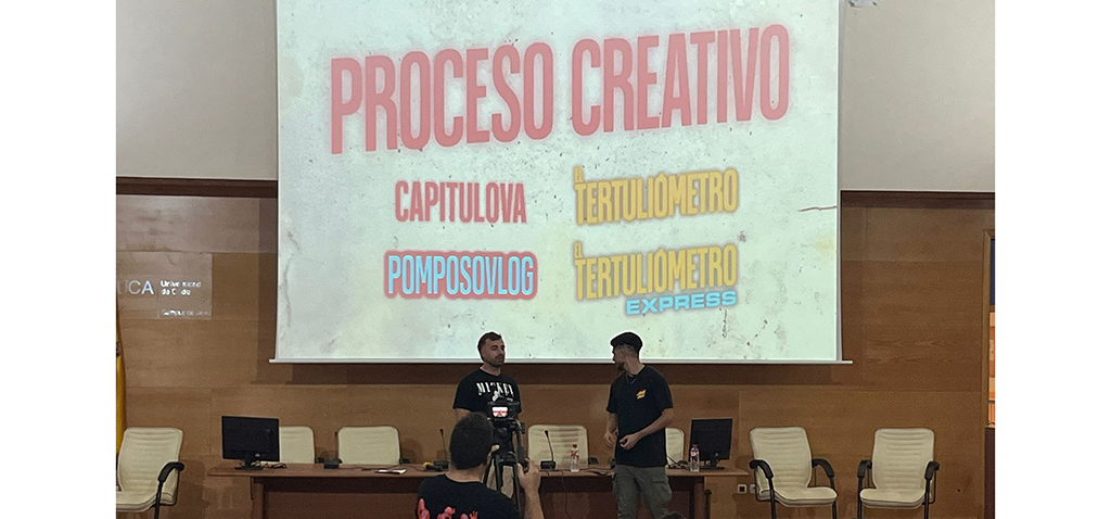 Más de un centenar de estudiantes acudieron a esta jornada, dentro del Pasaporte Cultural ofrecido por la facultad, donde tuvieron la oportunidad de vivir en vivo y en directo cómo es el proceso de grabación de un podcast de la mano de los egresados Fran (@fran_gz) y Lolo (@lolomr21), para su canal de Youtube de BELLACOS TV (@bellacos.tv). En sus redes sociales cuentan con más de 9.000 seguidores en tiktok, más de 5.000 en Instagram y más de 1.000 en Youtube.