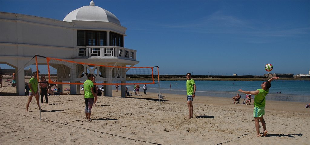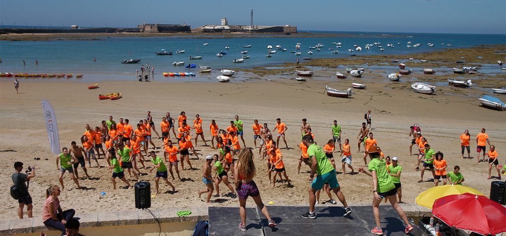 Estudiantes de 4º del grado de Ciencias de la Actividad Física y el Deporte de la Universidad de Cádiz han organizado hoy la Jornada Naufit en la playa de La Caleta. Cerca de un centenar de alumnos y alumnas de la UCA han participado en esta actividad, abierta también a la ciudadanía.