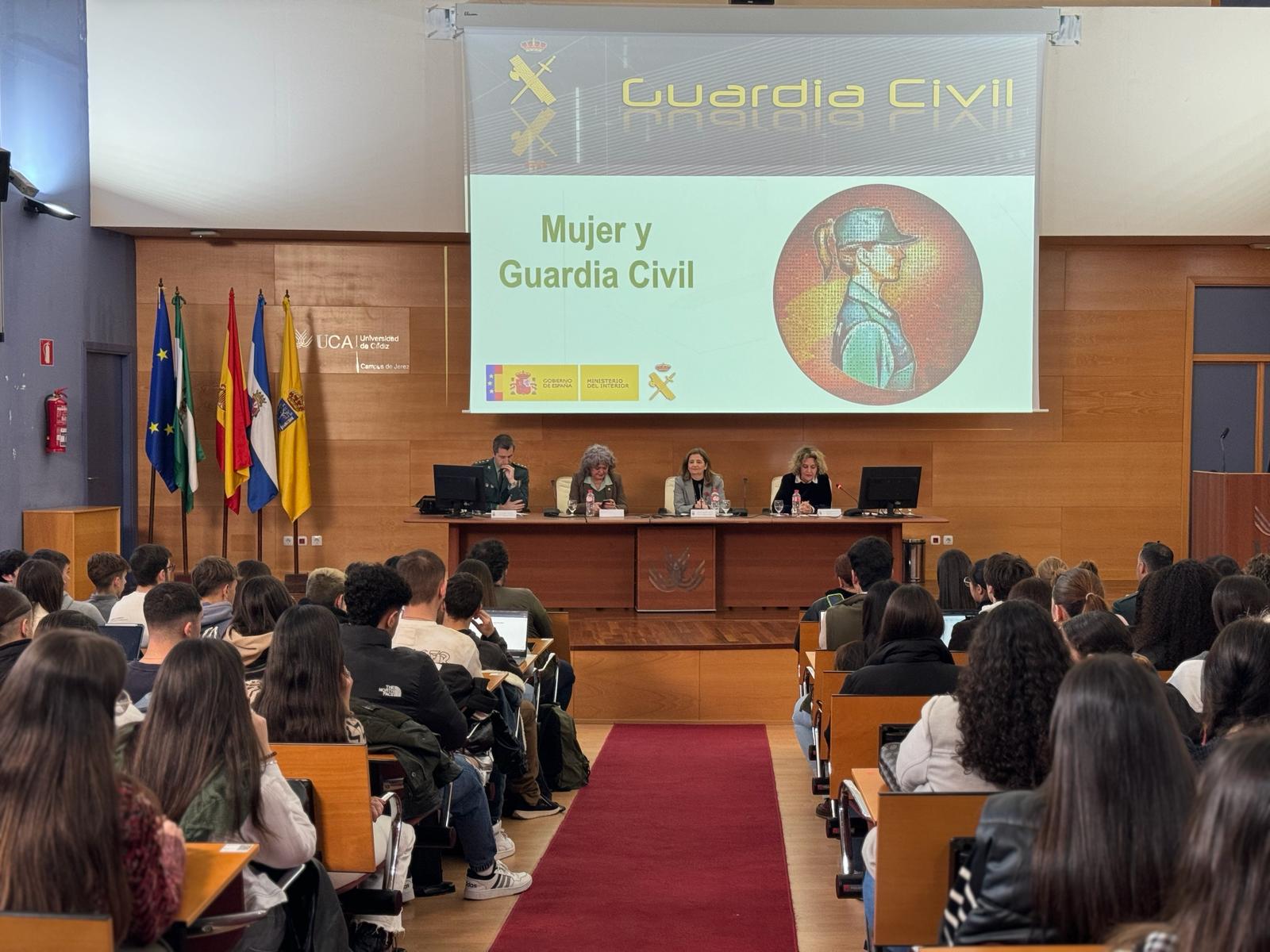 Una actividad organizada por la Dirección General de Igualdad de la UCA, con la colaboración de la Facultad de Derecho y la Guardia Civil de la provincia de Cádiz en el marco de la programación del Día Internacional de las Mujeres.