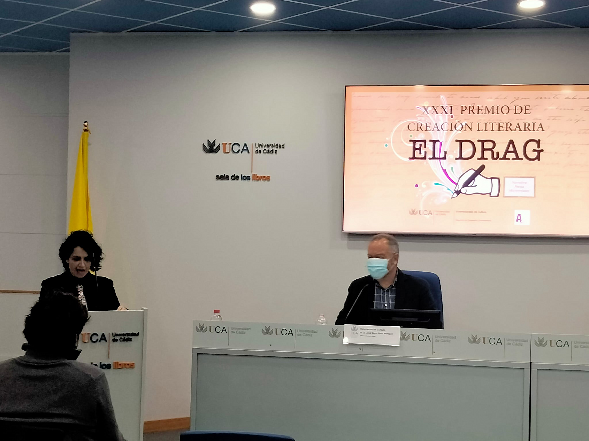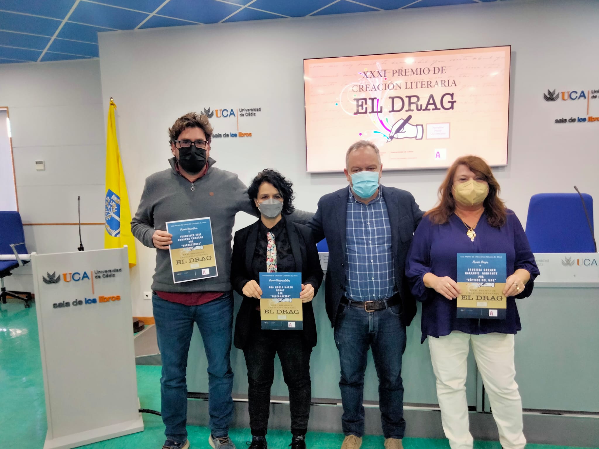 El servicio de Extensión Universitaria del Vicerrectorado de Cultura de la Universidad de Cádiz, en colaboración con el programa Literatura Andaluza en Red (Cultura Andaluza en Red) del Proyecto Atalaya, ha impulsado la XXXI edición del Certamen Literario El Drag, que ha obtenido una alta participación con un total de 77 trabajos presentados. El vicerrector de Cultura de la UCA, José María Pérez Monguió, ha presidido hoy la entrega de premios, en la sala de Los Libros del edificio Andrés Segovia, al estudiante Francisco José Camacho Camargo y las alumnas Patrizia Carmen Marruffi Bonfante y Ana María Marín Bonat.