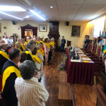 El vicerrector de Estudiantes y Empleo de la Universidad de Cádiz, Manuel Sánchez, en compañía de la concejala delegada de Asuntos Social y de Mayores del Ayuntamiento de Cádiz, Helena Fernández, la subdirectora de la sede de Cádiz del Aula de Universitaria de Mayores, Laura Sánchez, la presidenta de la Asociación Gaudeamus Igitur, Manuela Dávila, y el presidente de la Asociación cultural Aula Permanente, Juan José Almenara, ha presidido – en el salón de Grados de la Facultad de Medicina – la ceremonia de graduación (promoción 2018/2023) del Aula Universitaria de Mayores de Cádiz.