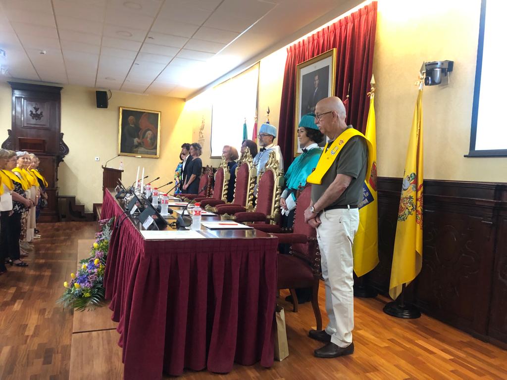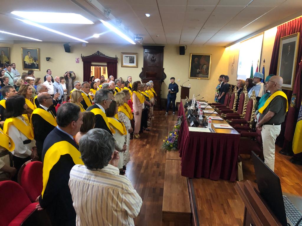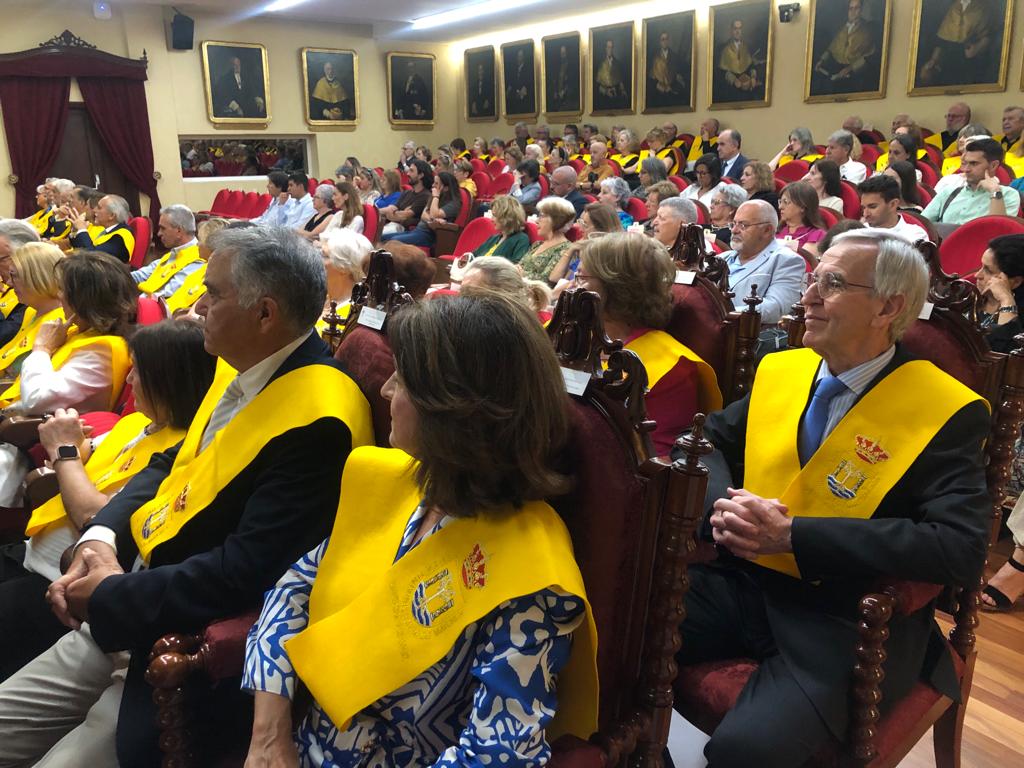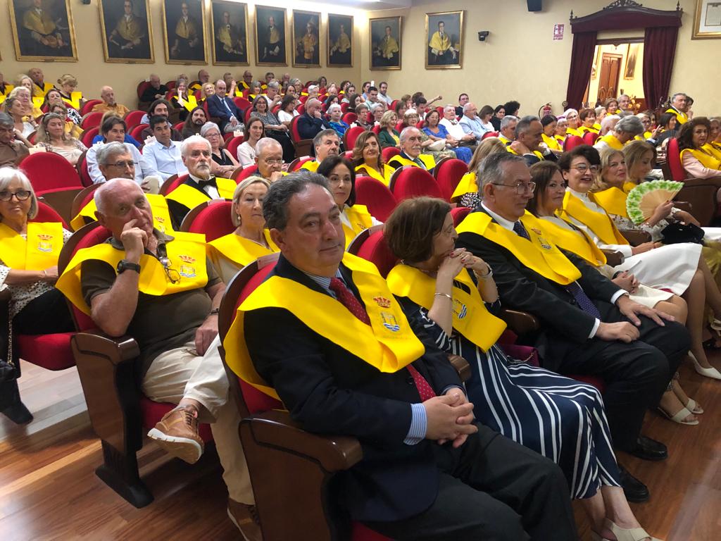 El vicerrector de Estudiantes y Empleo de la Universidad de Cádiz, Manuel Sánchez, en compañía de la concejala delegada de Asuntos Social y de Mayores del Ayuntamiento de Cádiz, Helena Fernández, la subdirectora de la sede de Cádiz del Aula de Universitaria de Mayores, Laura Sánchez, la presidenta de la Asociación Gaudeamus Igitur, Manuela Dávila, y el presidente de la Asociación cultural Aula Permanente, Juan José Almenara, ha presidido – en el salón de Grados de la Facultad de Medicina – la ceremonia de graduación (promoción 2018/2023) del Aula Universitaria de Mayores de Cádiz.