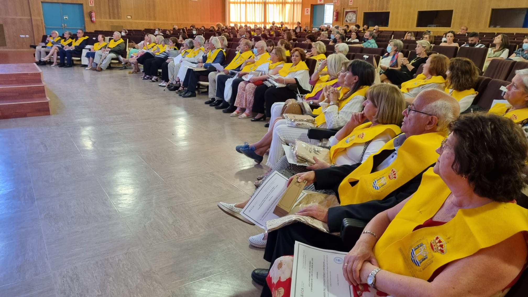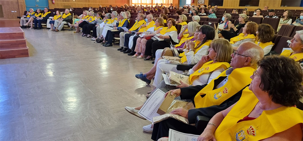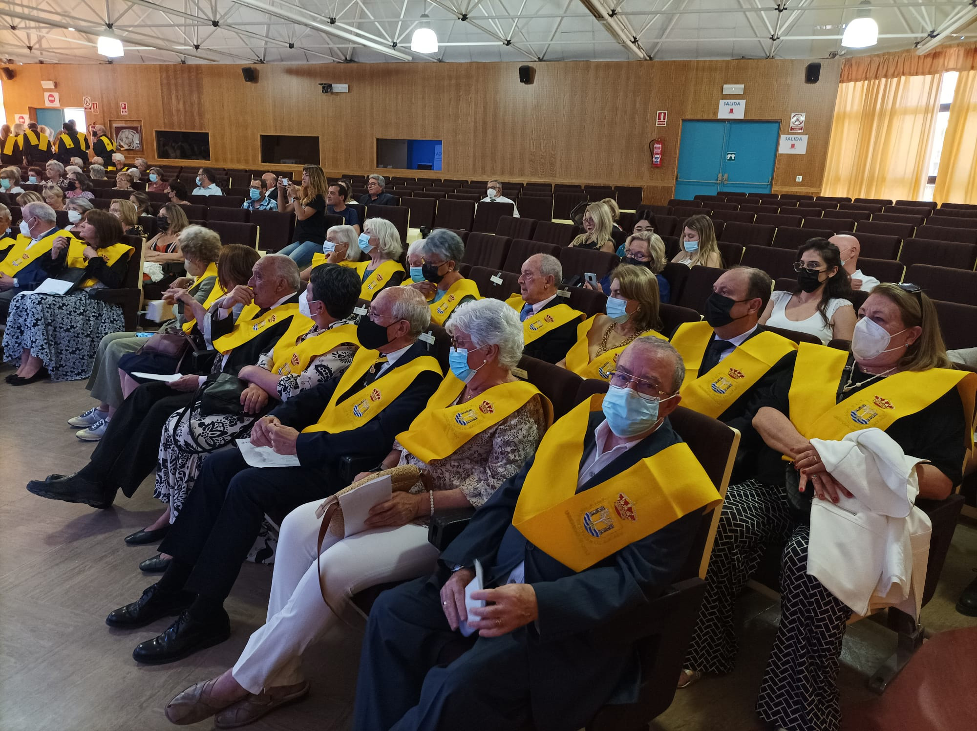 El Vicerrectorado de Estudiantes y Empleo ha celebrado de nuevo esta tarde, tras el paréntesis de dos años por la pandemia, el primer acto presencial de graduación del Aula Universitaria de Mayores en el Campus de Cádiz con las promociones que finalizaron 2020/21 y 2021/22.