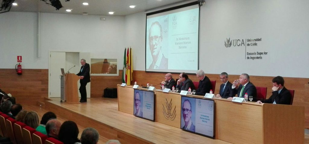 La Sociedad de Ingeniería de Fabricación ha organizado en la Escuela Superior de Ingeniería de la Universidad de Cádiz un acto de homenaje a Mariano Marcos Bárcena, fallecido hace unos meses y que fuera director y profesor del centro. El programa ha incluido una serie de conferencias y mesas redondas sobre las áreas de trabajo donde destacó el profesor Marcos Bárcena
