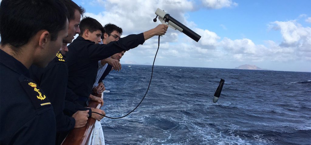 Las actividades científicas a realizar a bordo, consisten en primer lugar en la obtención de perfiles de temperatura mediante lanzamiento de sondas desechables de temperatura (XBTs) a lo largo de la derrota del buque, que incluye un transecto que cruza el océano Atlántico desde Cádiz al continente americano, atravesando el Ecuador, tal y como ha explicado el catedrático Miguel Bruno. Con los datos obtenidos de perfiles en la columna de agua es posible construir secciones verticales de temperatura. Como objetivo científico se podría plantear la comparación de la variabilidad de la distribución de temperaturas en esas secciones entre las dos travesías realizadas en los cruceros previstos. También se podrían utilizar los datos obtenidos para la validación de los modelos oceánicos disponibles (NCOM, HYCOM, MYOCEAN), comparando los perfiles obtenidos con los simulados por los modelos. Además, estos perfiles de temperatura se integrarán en bases de datos oceanográficos existentes.