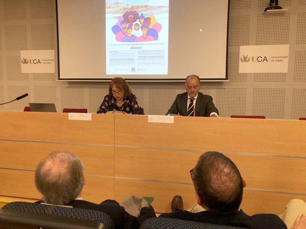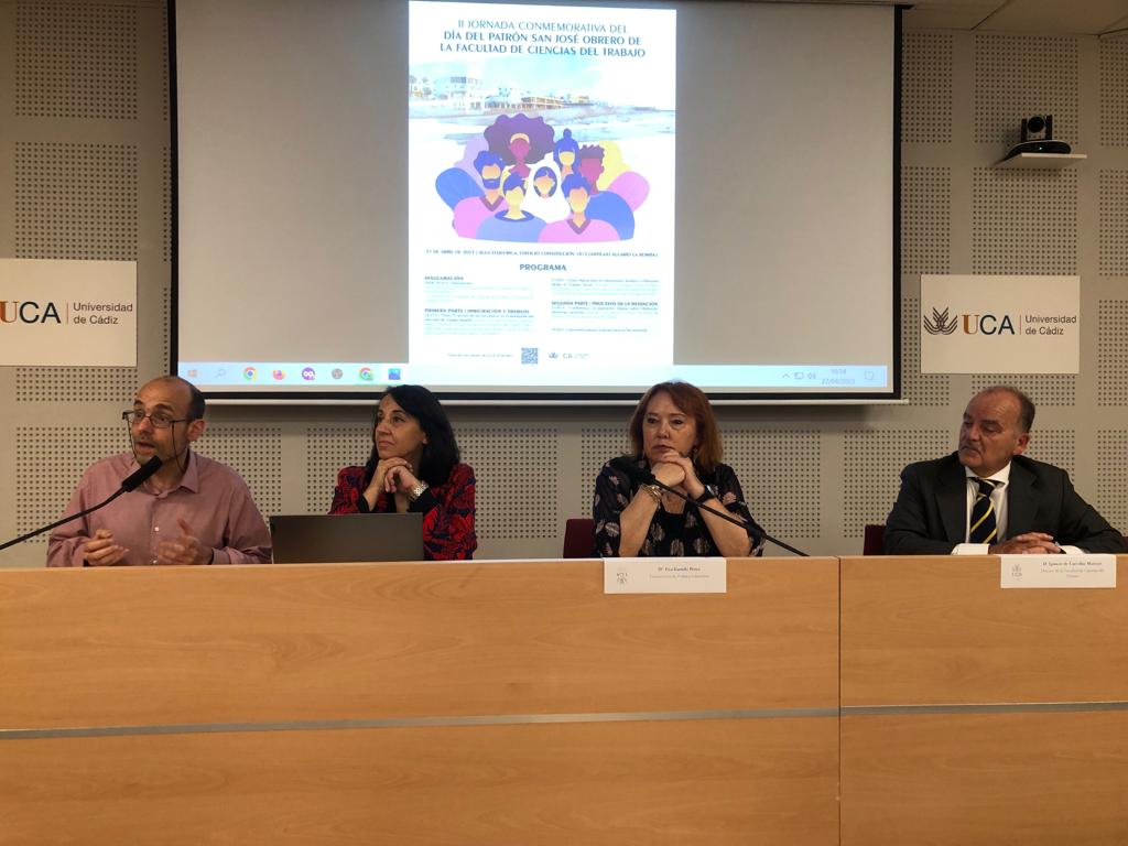 El edificio Constitución 1812 acoge hoy, jueves 27 de abril, la II Jornada Conmemorativa del Día del Patrón San José Obrero de la Facultad de Ciencias del Trabajo. La vicerrectora de Política Educativa de la UCA, Eva Garrido, acompañada por el decano de la Facultad de Ciencias del Trabajo, Ignacio De Cuevillas, han presidido, en la sala Lequerica, el acto inaugural.