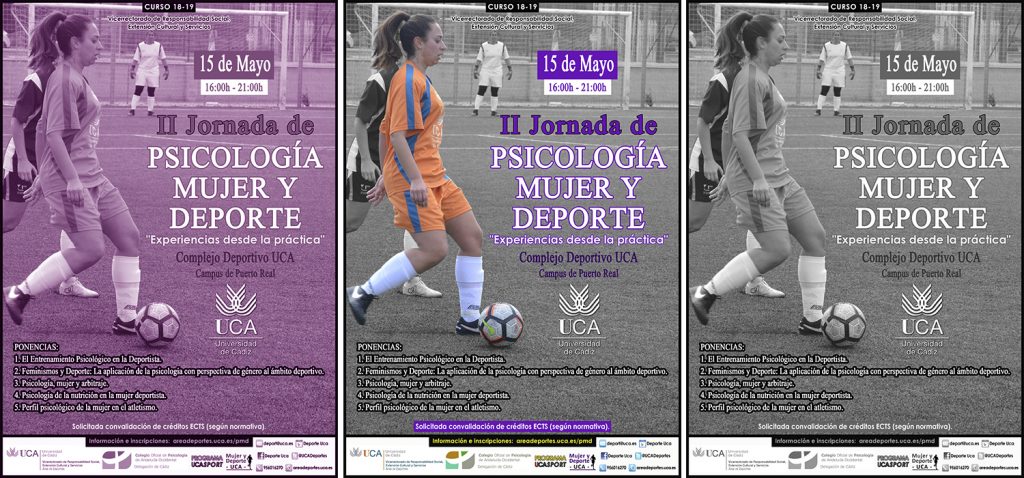 El grupo Psicología del Deporte de la Delegación de Cádiz del Colegio Oficial de Psicología en Andalucía Occidental, en colaboración con el Vicerrectorado de Responsabilidad Social, Extensión Cultural y Servicios de la Universidad de Cádiz, organiza mañana miércoles 15, de 16 a 21 horas, la II Jornada Psicología, mujer y deporte en el Complejo Deportivo UCA del Campus de Puerto Real. En 2019, se dedicará a Experiencias desde la práctica.