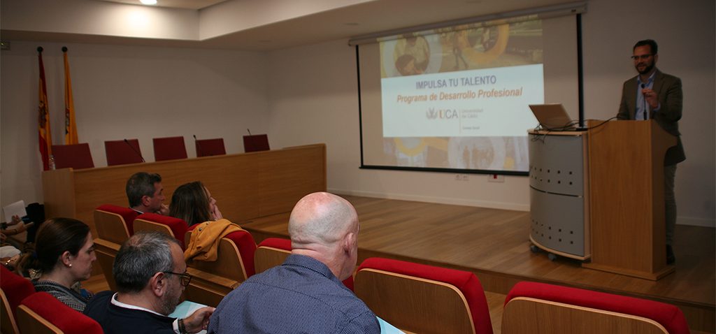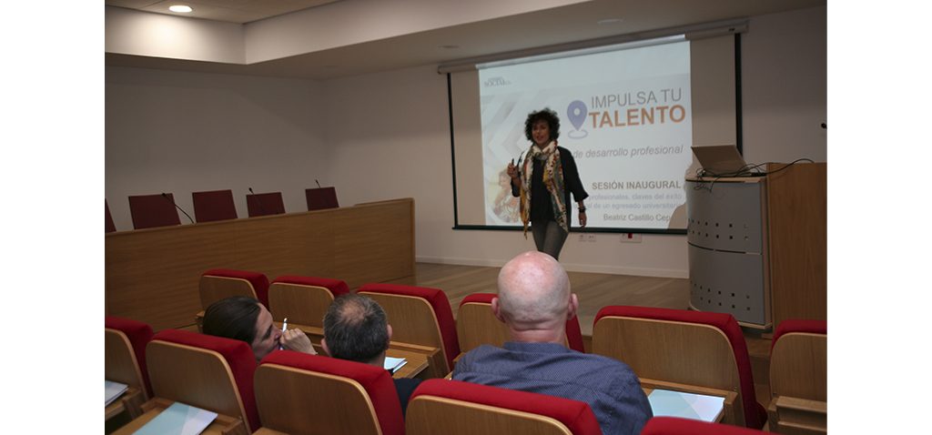 La coordinadora de Lanzadera de Empleo, Beatriz Castillo, ha ofrecido la conferencia inaugural Las competencias profesionales, claves del éxito laboral de un egresado universitario. A continuación, la responsable de Impulsa tu talento, Rocío Rubio, ha explicado su contenido, procedimiento de aprendizaje y funcionamiento.
