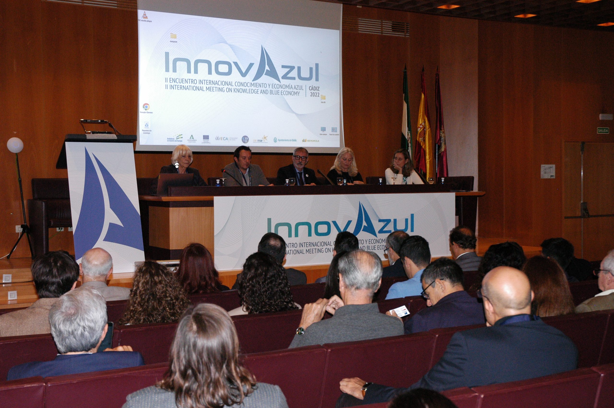 Organizado por la UCA y el CEI·MAR en coordinación con la Junta de Andalucía, la colaboración del Ayuntamiento de Cádiz y de la Autoridad Portuaria Bahía de Cádiz y el patrocinio de Iberdrola, InnovAzul se ha constituido nuevamente como el gran foro de referencia para liderar la planificación estratégica centrada en la Economía Azul en Europa y, a lo largo de esta semana, ha contado con la participación de expertos, profesionales, investigadores y representantes institucionales; cuyo ámbito de acción está especialmente vinculado a los sectores más relevantes relacionados con la Economía Azul: Construcción Naval y Offshore, Turismo Azul, Territorio Azul, Energías Renovables Marinas, Puertos y Logística Portuaria, Recursos Marinos y Sostenibilidad (que han contado con sesiones en paralelo de ponencias y mesas redondas donde se han analizado su presente y futuro y se han realizado propuestas de acción que permitan definir en cada uno de ellos la estrategia europea en Economía Azul desde el sur del sur del continente).