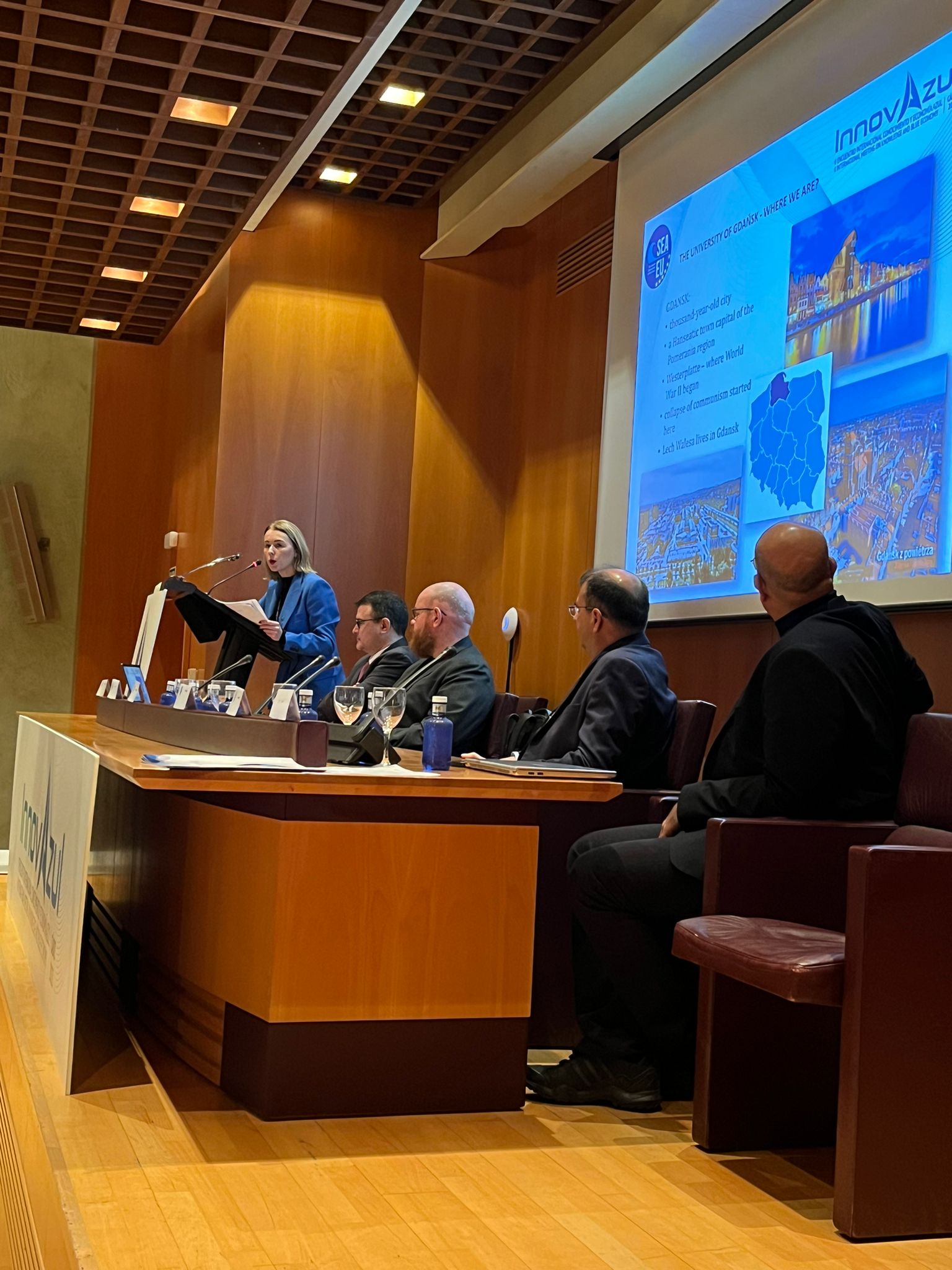 Hoy viernes, InnovAzul ha desarrollado, como en las jornadas precedentes, un intenso programa de actividades, compuesto, en este caso, por la SEA-EU SUMMIT de la Universidad Europea de los Mares para abordar las capacidades y oportunidades de colaboración en los territorios de la Alianza. En este sentido, su programa de contenidos ha contado con una sesión, donde ha participado los vicerrectores de investigación de las universidades socias; con el objetivo de compartir conocimientos y fortalezas en el ámbito del crecimiento azul. Al mismo tiempo, se han desarrollado un conjunto de ponencias cortas sobre temas específicos relacionados con la sostenibilidad de los océanos con la intervención de expertos internacionales de acuicultura, energía marina o turismo sostenible. Los asistentes han tenido, también, la oportunidad de conocer al nuevo miembro asociado de SEA-EU, la World Maritime University.