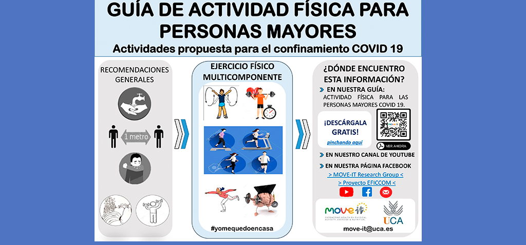 Investigadores de la Universidad de Cádiz, integrados en el grupo MOVE-IT y en el proyecto EFICCOM – Efecto del ejercicio físico supervisado a nivel cerebral, cognitivo y metabolómico, han elaborado una guía de entrenamiento para personas mayores, con el objetivo de reducir los posibles efectos negativos que se puedan producir tanto a nivel físico como mental, debido al confinamiento provocado por el COVID-19.