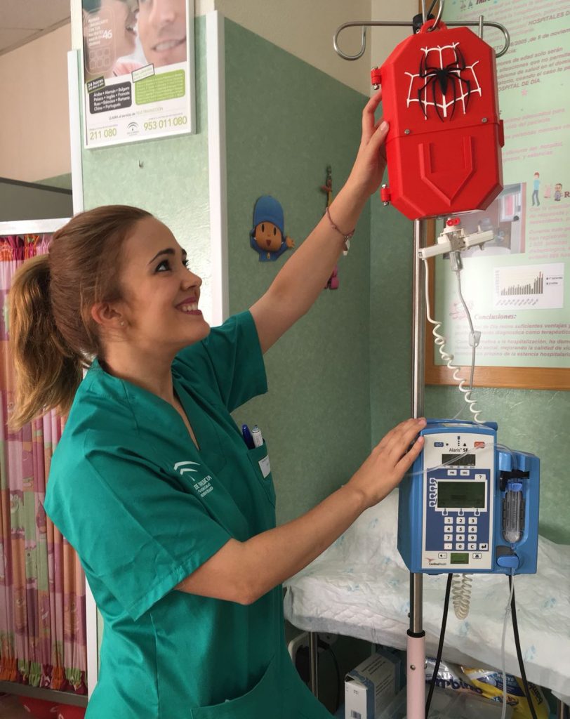 Investigadores de la Universidad de Cádiz usan tecnología 3D para fabricar carcasas con imágenes de héroes para uso en unidades de pediatría de hospitales de Cádiz. Se dispone ya de algunas unidades que se están probando en Oncología de los hospitales de Jerez y Puerta del Mar de Cádiz. Desde el departamento de Ciencia de los Materiales e Ingeniería Metalúrgica y Química Inorgánica de la UCA, con la coordinación del investigador Ramón y Cajal, Juan Carlos Hernández Garrido, se lleva a cabo esta iniciativa solidaria que tiene como finalidad alegrar la vida de los niños enfermos mediante el “camuflaje” de sus dispositivos de medicación durante sus tratamientos.