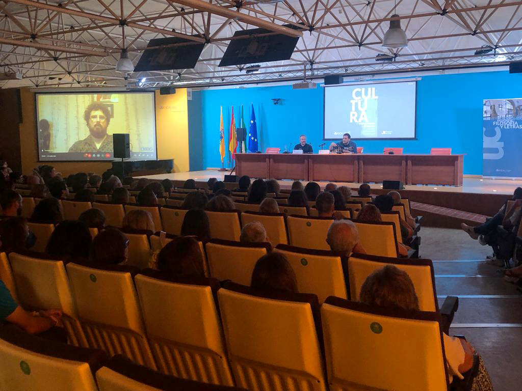 El Vicerrectorado de Cultura de la Universidad de Cádiz, a través del servicio de Extensión Universitaria, ha inaugurado hoy en el aula Magna de la Facultad de Filosofía y Letras, la segunda sesión del ciclo de diálogos Con voz propia, que tiene como protagonista al cantautor Ismael Serrano. Una actividad, coordinada por Fernando Lobo, que cuenta con el patrocinio de la Diputación Provincial de Cádiz. La entrada es libre hasta completar aforo.