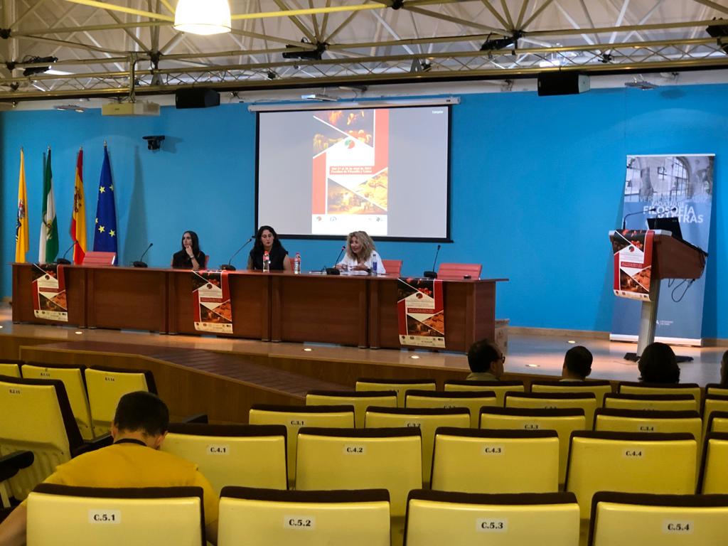 La Asociación de Jóvenes Historiadores y Humanistas de la Universidad de Cádiz celebran hoy y mañana su IV Congreso ‘Venciendo ausencias: La muerte a lo largo de la historia’ en formato multimodal (presencial y virtual). Las ponencias y comunicaciones se desarrollarán el primer día en la Facultad de Filosofía y Letras y el segundo en el edificio Constitución 1812 del Campus de Cádiz. La vicedecana de Estudiantes y Relaciones Institucionales de la Facultad de Filosofía y Letras, Mª del Mar Sarmientos, junto a la presidenta y la secretaria de la Asociación organizadora, Ana Rita García y Esther Herráiz, respectivamente, han dado la bienvenida en el Aula Magna.