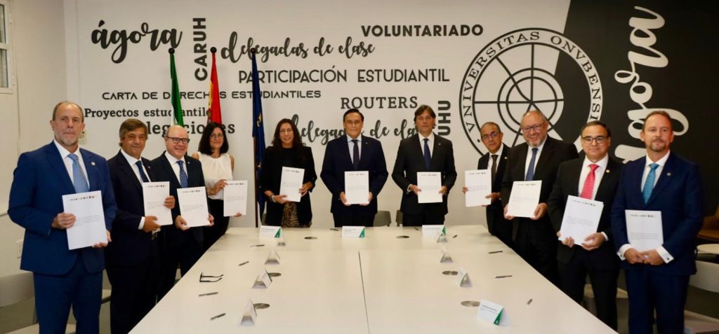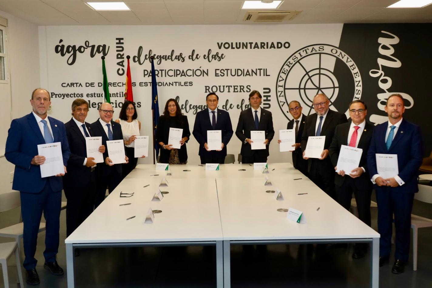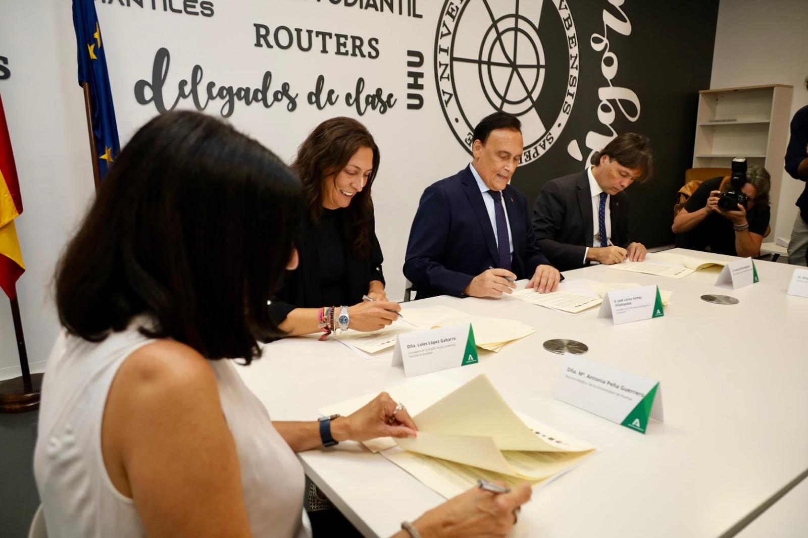 Los consejeros de Universidad, Investigación e Innovación e Inclusión Social, Juventud, Familias e Igualdad, José Carlos Gómez Villamandos y Loles López, respectivamente, junto a las universidades públicas de Andalucía, han firmado esta semana, en un acto celebrado en Huelva, el convenio para la puesta en marcha de las labores de coordinación de los trabajos de atención a la discapacidad y a las necesidades específicas de apoyo educativo en las instituciones académicas andaluzas, de lo que se encargará la Universidad Pablo de Olavide (UPO), para garantizar así la igualdad de oportunidades a los estudiantes y demás miembros de la comunidad universitaria con discapacidad.