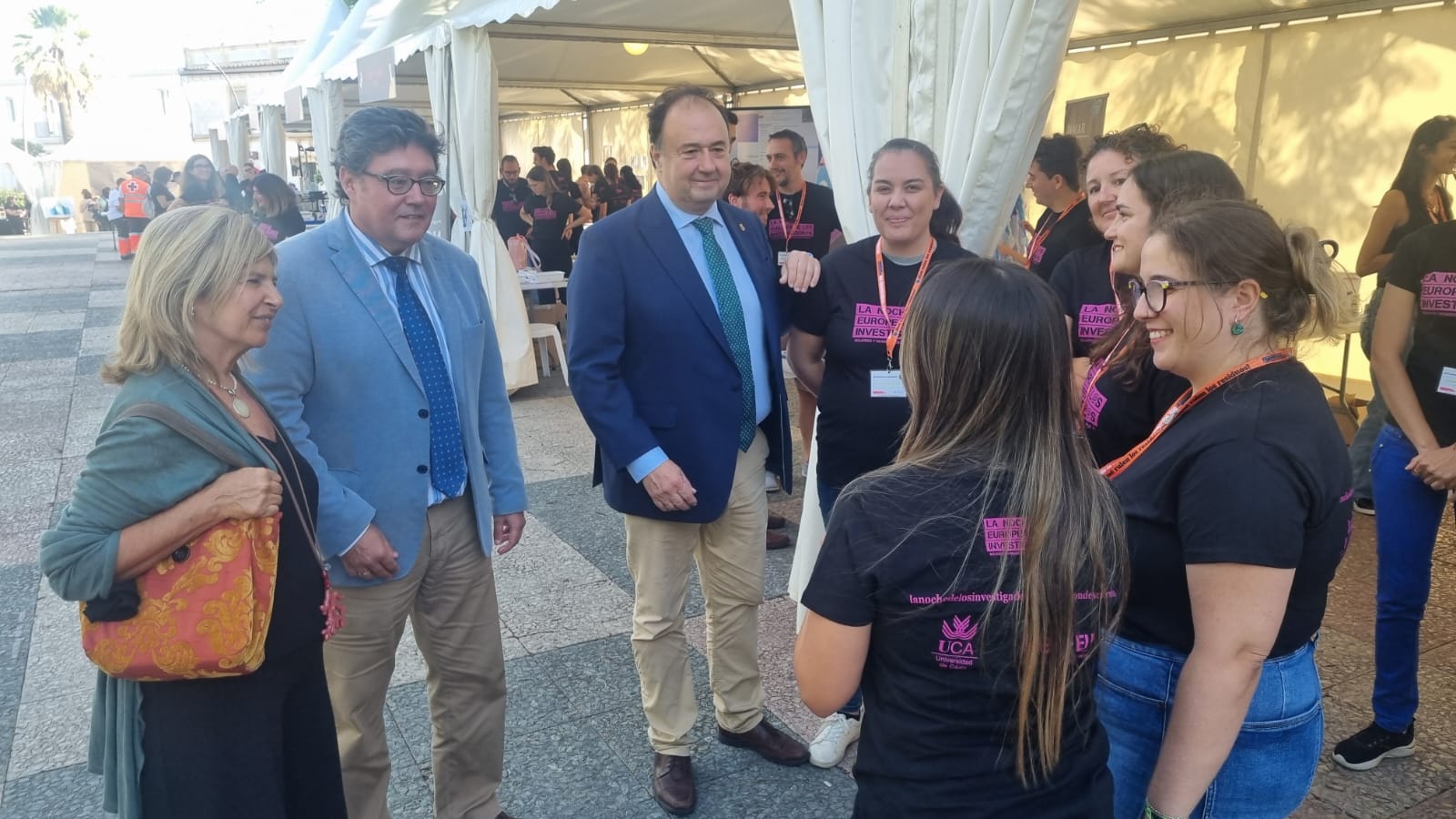 La Noche Europea de los Investigadores, que cumple su duodécimo año de celebración consecutivo en Andalucía, reúne hoy en la Alameda Vieja de Jerez, a más de 540 investigadores, con el objetivo de acercar la ciencia a la sociedad junto a centenares de personas que se han acercado al evento organizado por la Universidad de Cádiz. El rector de la UCA, Casimiro Mantell, les ha dado la bienvenida en compañía de la delegada territorial de Desarrollo Educativo y Formación Profesional y de Universidad, Investigación e Innovación en Cádiz, M.ª Isabel Paredes, y del delegado municipal de Desarrollo Educativo del Ayuntamiento de Jerez, José Ángel Aparicio.
