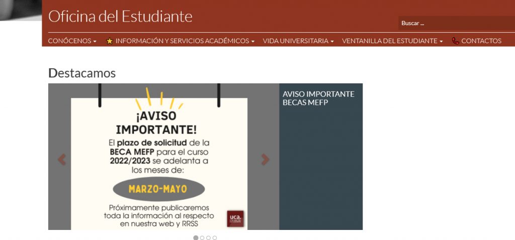 La Universidad de Cádiz informa de la convocatoria, publicada por el Ministerio de Educación y Formación Profesional en el BOE 61 (12 de marzo de 2022), de becas de carácter general para el curso académico 2022-2023, para estudiantes que cursen estudios postobligatorios. El plazo de presentación de solicitud será del 30 de marzo al 12 de mayo.
