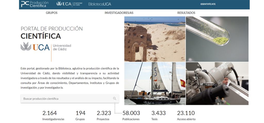 Actualmente, el Portal de Producción Científica recoge 58.003 publicaciones, 3.433 tesis defendidas y 2.694 tesis dirigidas, 23.110 documentos accesibles en abierto, 2.323 proyectos de investigación y 230 patentes en las que participa la UCA. Durante 2023 se han incorporado al mismo 7.555 nuevos documentos.