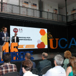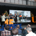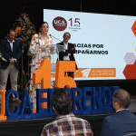 A continuación, las autoridades han hecho entrega de reconocimientos a proyectos inspiradores y colaboradores durante estos tres quinquenios. En primer lugar, a Rita Benítez, egresada de la UCA y fundadora de la empresa Era Cultura – Laboratorio de Arqueología Experimental, la primera empresa del sector de industrias culturales gaditanas con 20 años de experiencia. Después, al máster oficial en Creación de Empresas, Nuevos Negocios y Proyectos Innovadores (Masterup) de la Universidad de Cádiz, que en este curso celebra su décimo aniversario, una década en la que han ofrecido formación especializada a 200 personas de 23 países diferentes con una tasa de inserción laboral del 100%. Seguidamente, a una joven emprendedora gaditana y antigua alumna de la UCA, Begoña Arana, que fundó Nuevo Hogar Betania, en 2011, una entidad sin ánimo de lucro con un equipo de más de un centenar de trabajadores que tiene como fin promocionar y empoderar al ser humano. Y en último caso, a la empresa Surcontrol como la primera empresa de base tecnológica que surgió con el servicio de atención a la persona emprendedora de la UCA. Una EBT que nació de un grupo de investigación y la cooperación de profesorado y alumnado de la entonces Escuela Universitaria de Ingeniería Técnica Naval.