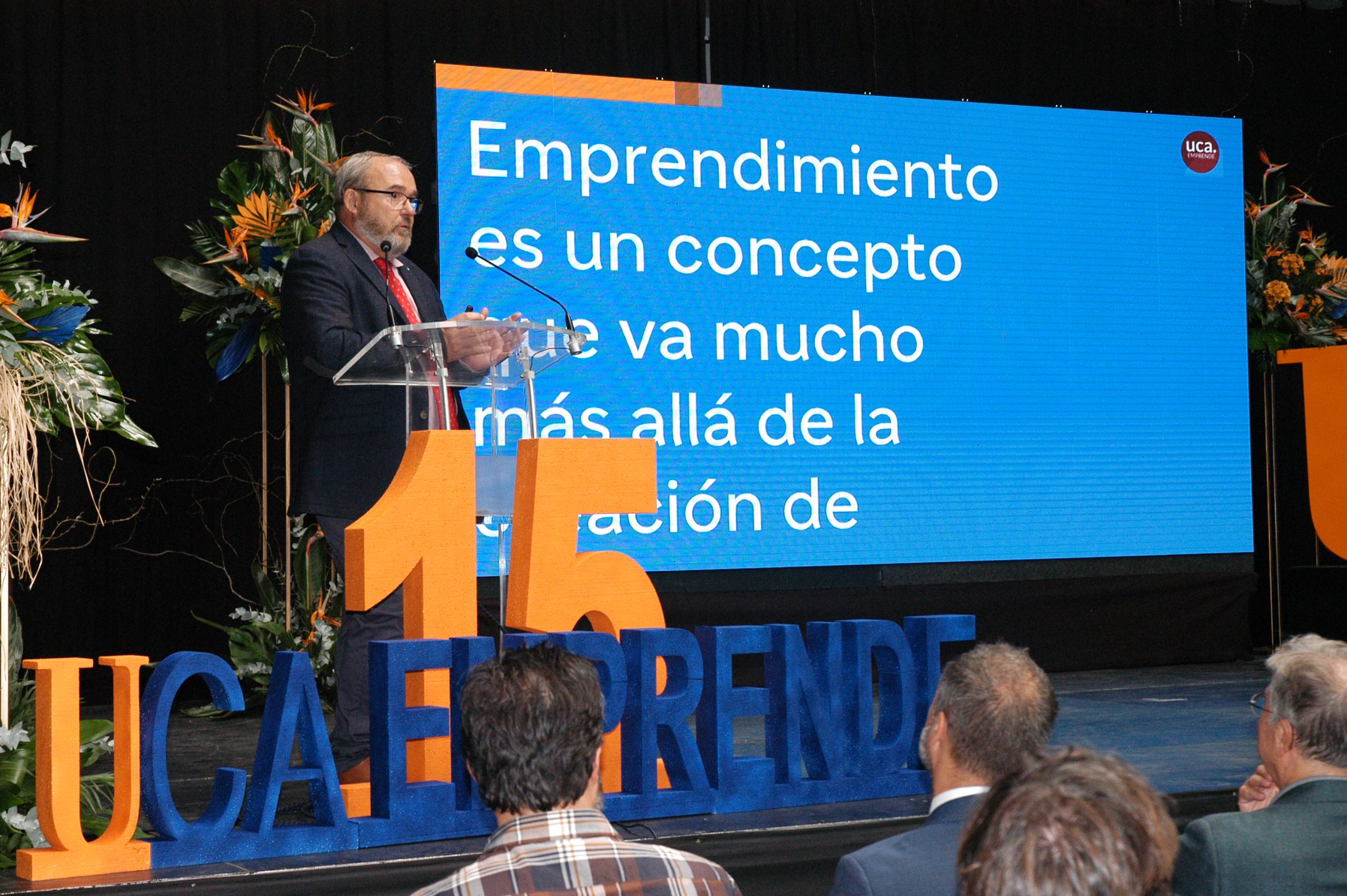 Francisco Piniella ha agradecido a todo el equipo que ha formado parte de la Cátedra, a los rectores y equipos que han propiciado su crecimiento, así como a todas las empresas e instituciones involucradas en su desarrollo. “En la UCA lo tuvimos y lo seguimos teniendo claro. Hoy, como ayer, hemos situado el impulso a la cultura y al conocimiento del emprendimiento como una prioridad dentro de la estrategia de nuestra Universidad. Lo importante es seguir haciendo los deberes”, ha recordado, y seguir trabajando para fortalecer las habilidades y competencias emprendedoras de su alumnado, para sentar las bases de una economía más innovadora y sostenible, para mejorar la empleabilidad de sus egresados y egresadas. Prueba de ello, ha afirmado, que en este acto “hay muchos profesores, catedráticos y responsables de investigación que están detrás de estas ideas y de diversas especialidades como Ciencias del Mar o Ingenierías”, que no solo pertenecen a Económicas o Empresariales porque “el emprendimiento ha calado en toda la comunidad universitaria y este es otro de los éxitos de la Cátedra”.