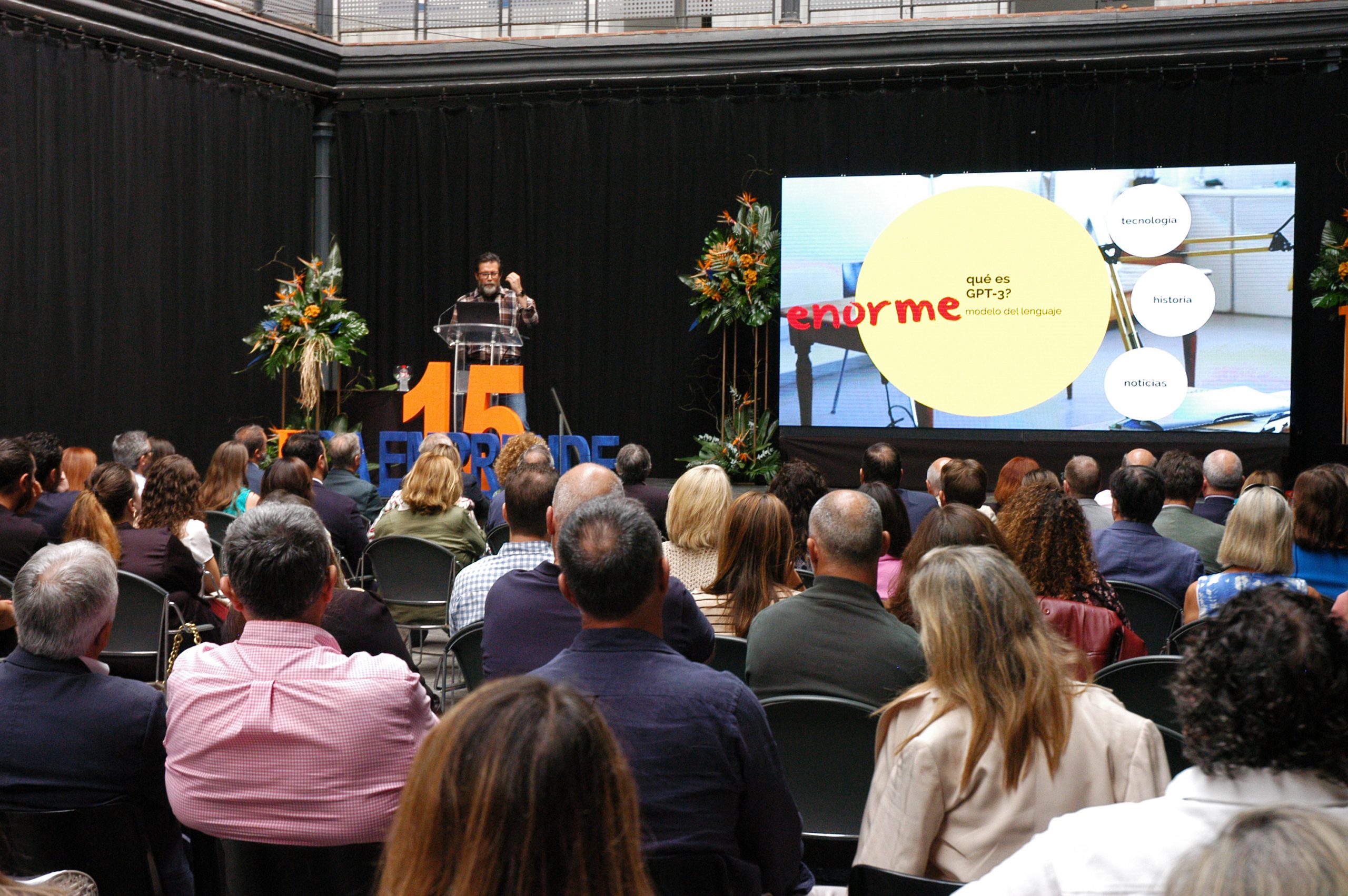 La conferencia sobre El futuro del emprendimiento ¿cómo trabajaremos con inteligencia artificial en nuestra Startup ha puesto el broche final con la intervención del experto en innovación corporativa e ingeniero en Telecomunicación y Executive MBA, Néstor Guerra. Una ponencia innovadora, donde ha acercado a la Universidad el futuro tecnológico del GPT-3, que es ya una realidad, para mejorar las herramientas a disposición del mundo emprendedor en “la gestión del trabajo, el diseño y validación de una idea o en estrategia y crecimiento.”