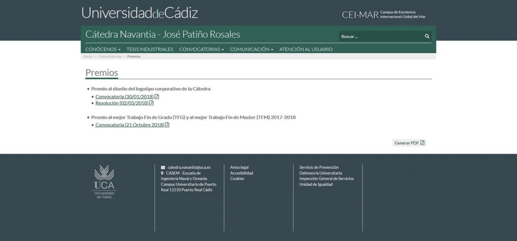 La Cátedra NAVANTIA-José Patiño Rosales de la Universidad de Cádiz convoca sus premios a los mejores Trabajos Fin de Grado (TFG) y Máster (TFM), desarrollados durante el curso 2017/18. El plazo de presentación finaliza el día 11 de noviembre de 2018, antes de las 14 horas.