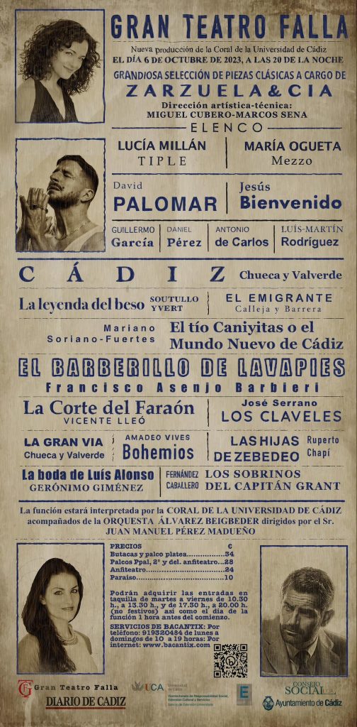 La Coral de la UCA y la Orquesta Álvarez Beigbeder interpretarán ‘Zarzuela&Cia’ en el Gran Teatro Falla 5 octubre 2023