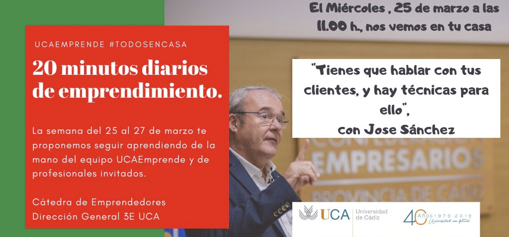 El director General de 3E de la UCA, el profesor José Manuel Sánchez, inaugurará este espacio el miércoles 25, a las 11 horas, con el temaTienes que hablar con tus clientes y hay técnicas para ello.