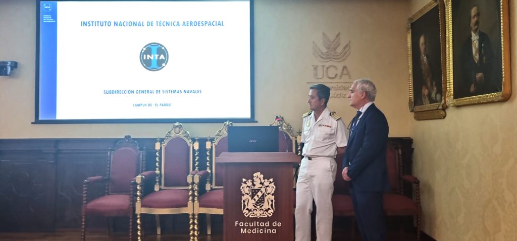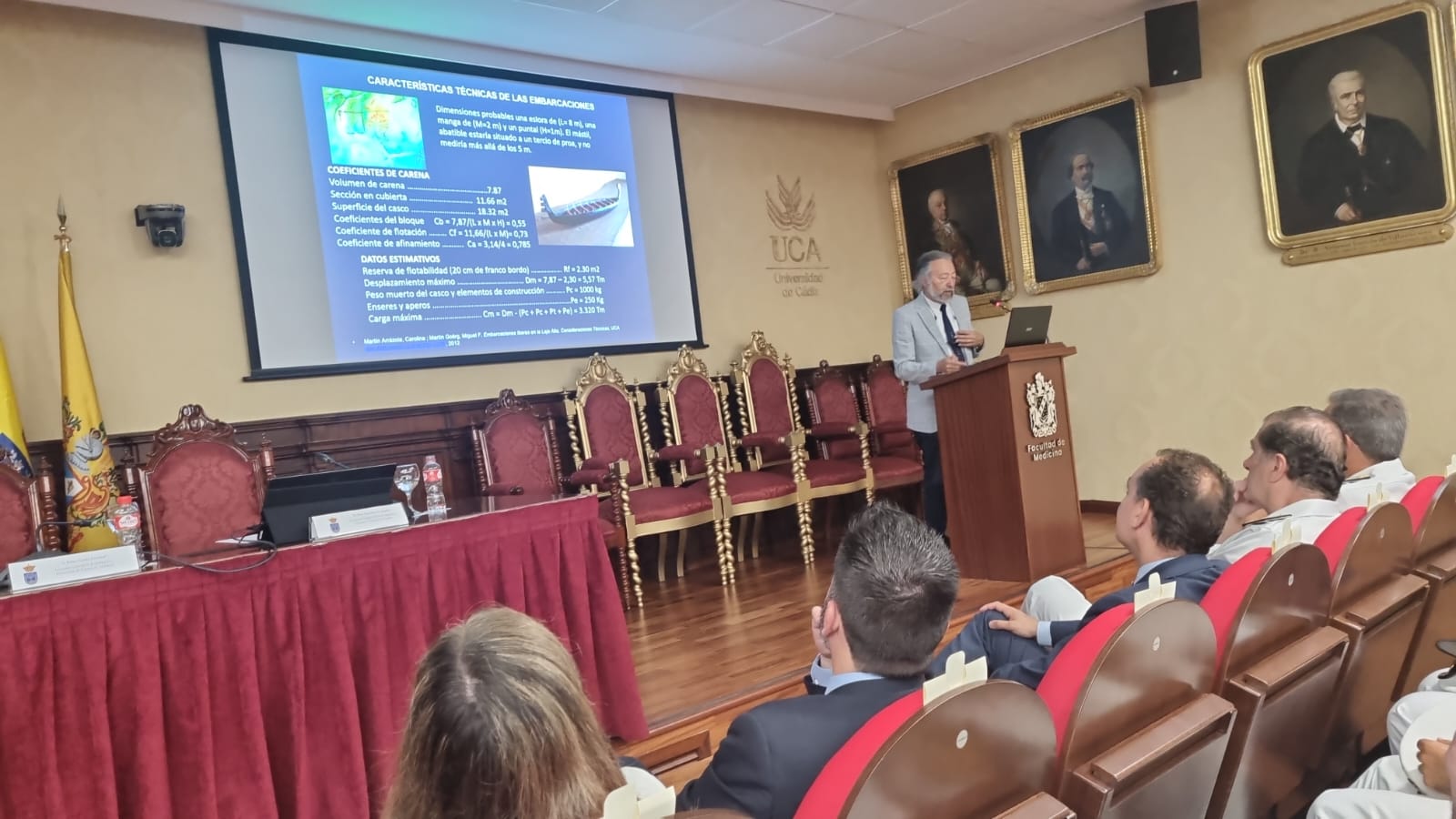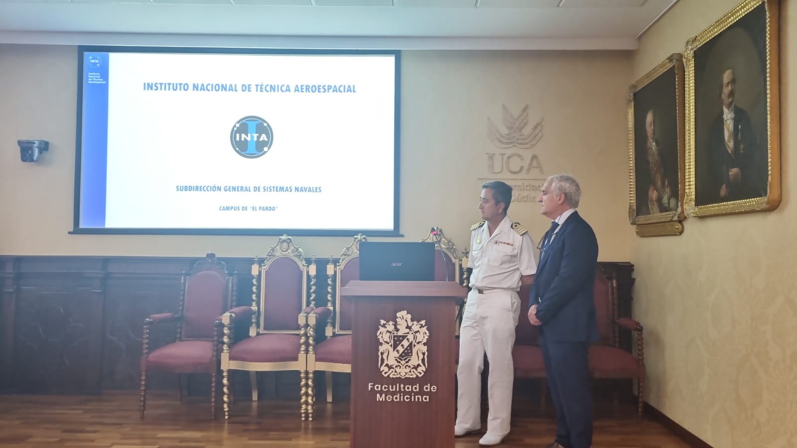 Posteriormente, el capitán de Navío del Cuerpo de Ingenieros de la Armada y subdirector General de Sistemas Navales del INTA, Centro de Experiencias Hidrodinámicas de El Pardo (CEHIPAR), Francisco Javier Pérez, junto al ingeniero Técnico Naval, jefe del área de Producción en la Subdirección General de Sistemas Navales del INTA, CEHIPAR y antiguo alumno de esta Escuela, Juan