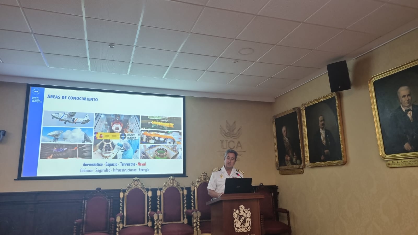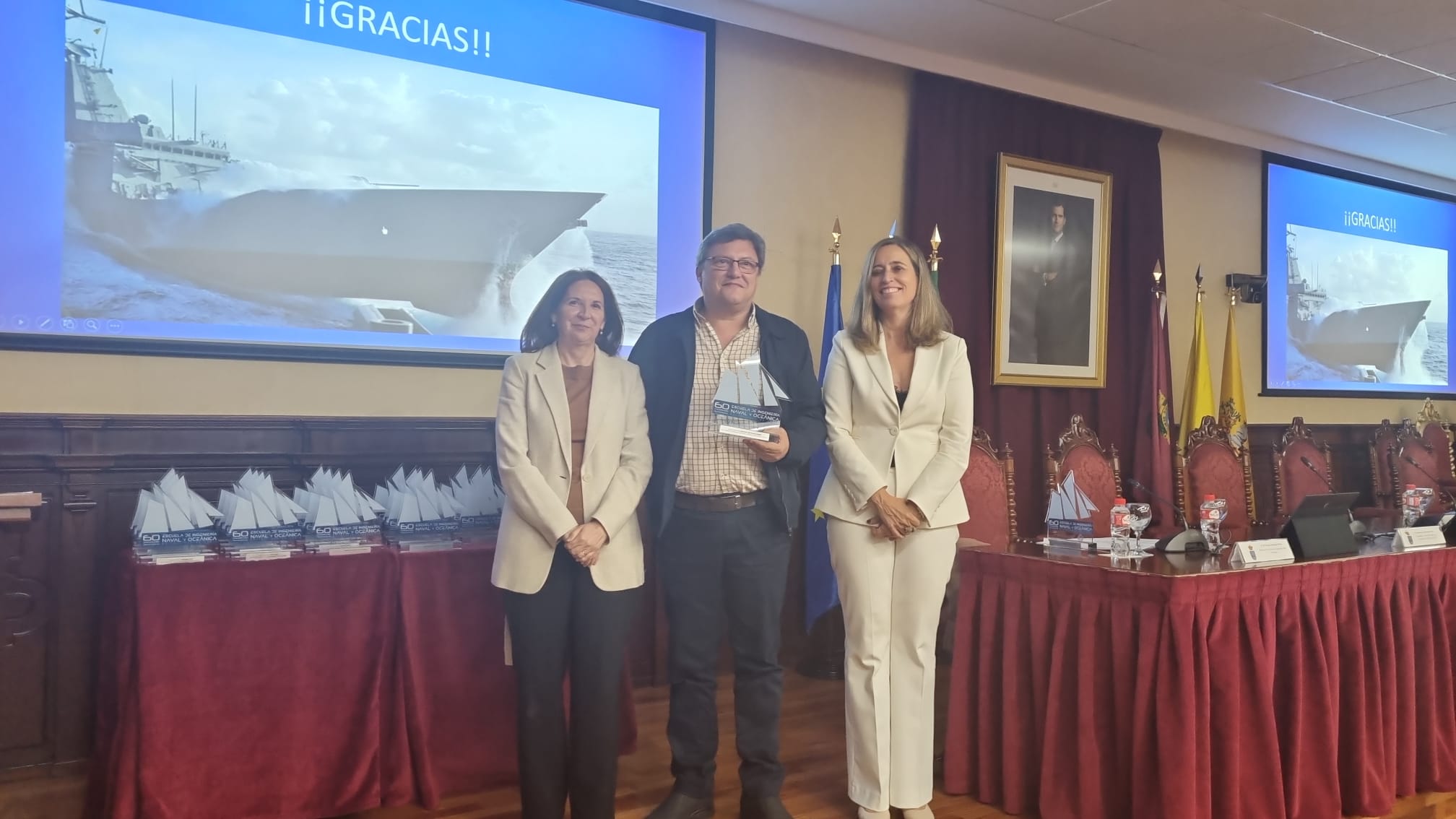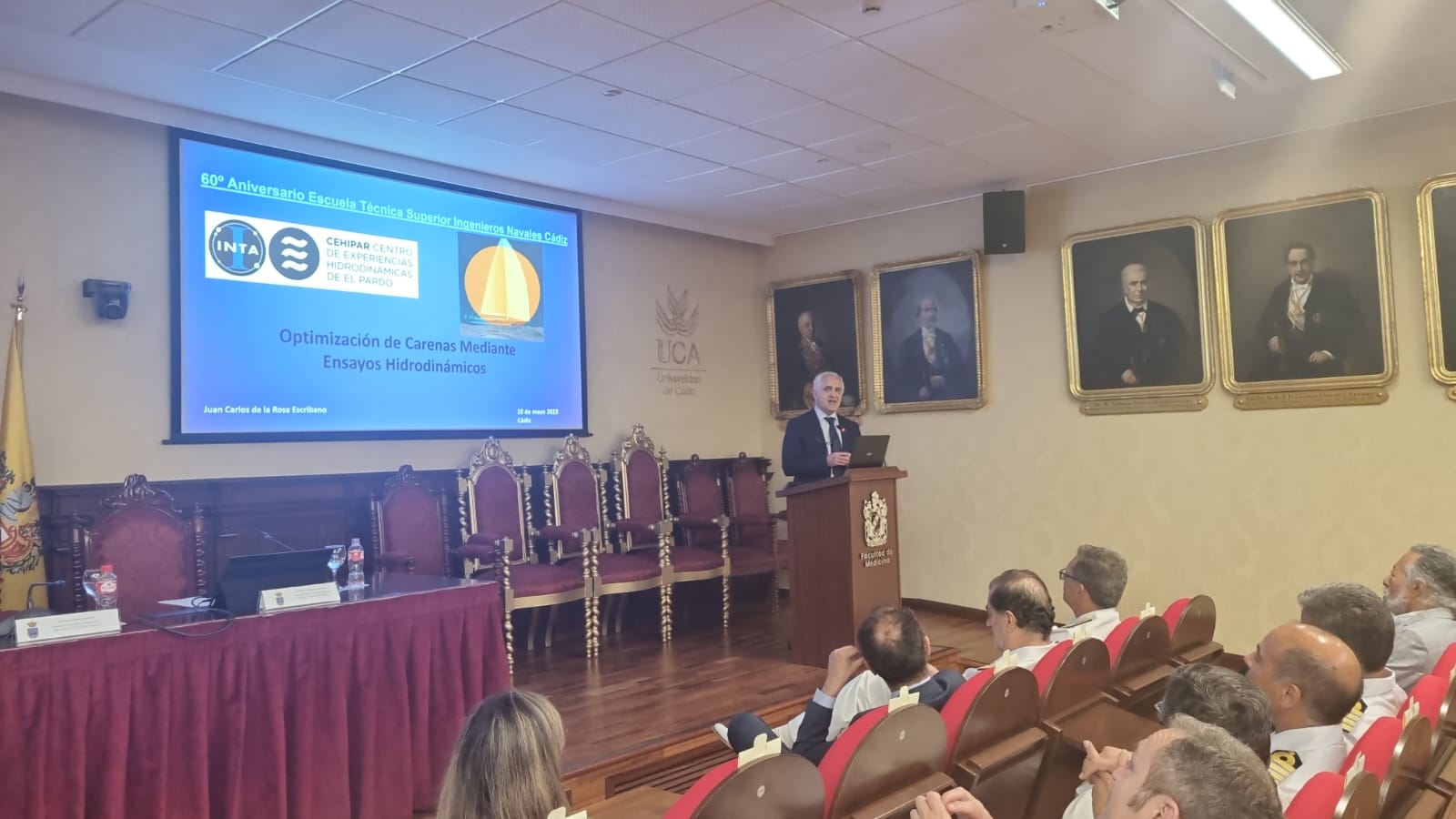 Posteriormente, el capitán de Navío del Cuerpo de Ingenieros de la Armada y subdirector General de Sistemas Navales del INTA, Centro de Experiencias Hidrodinámicas de El Pardo (CEHIPAR), Francisco Javier Pérez, junto al ingeniero Técnico Naval, jefe del área de Producción en la Subdirección General de Sistemas Navales del INTA, CEHIPAR y antiguo alumno de esta Escuela, Juan