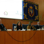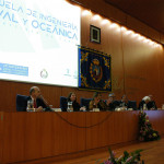 El rector de la Universidad de Cádiz, Francisco Piniella, acompañado por la alcaldesa de Puerto Real, Elena Amaya, y la directora de la Escuela de Ingeniería Naval y Oceánica, Victoria Redondo, ha presidido esta mañana, en el salón de Actos de la Facultad de Ciencias, el acto inaugural del programa conmemorativo del 60º aniversario de la Escuela de Ingeniería Naval y Oceánica. Les han acompañado en la mesa de apertura el almirante de la Flota de la Armada Española, Eugenio Díaz del Río, la presidenta de la Autoridad Portuaria de la Bahía de Cádiz, Teófila Martínez, el vicedecano del Colegio de Ingenieros Navales de España, Rafael de Góngora, y el director de la unidad de Negocio de Corbetas y BAM, José Antonio Rodríguez.