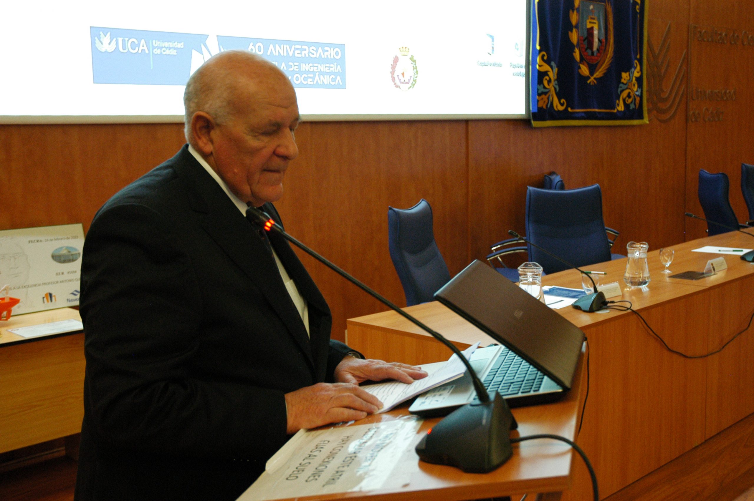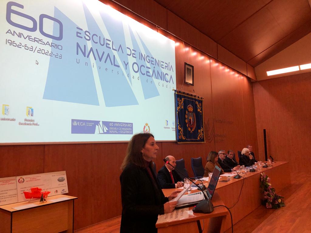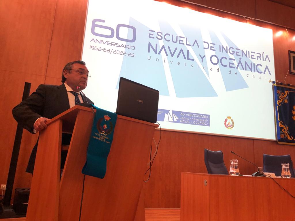 En sus palabras, ha agradecido a todos los rectores y sus equipos, así como a los diferentes decanatos del centro, a su personal docente, investigador y de administración y servicios y alumnado, “nada hubiera sido posible sin vuestro trabajo responsable, riguroso y callado. Me gustaría individualizar este sentimiento de gratitud en una persona que refleja como ninguna otra este compromiso y que desgraciadamente ya no se encuentra con nosotros: el profesor Antonio Querol”. Además, ha reconocido el apoyo y la colaboración de todas las instituciones y empresas implicadas en estas décadas: a la Armada, al Colegio de Ingenieros Navales, a Navantia, al Clúster Marítimo-Naval de Cádiz, a Schneider y a “tantas instituciones y empresas (grandes, medianas y pequeñas) que se han involucrado en las prácticas curriculares de nuestro alumnado, en la docencia de nuestros títulos o en proyectos de investigación”.