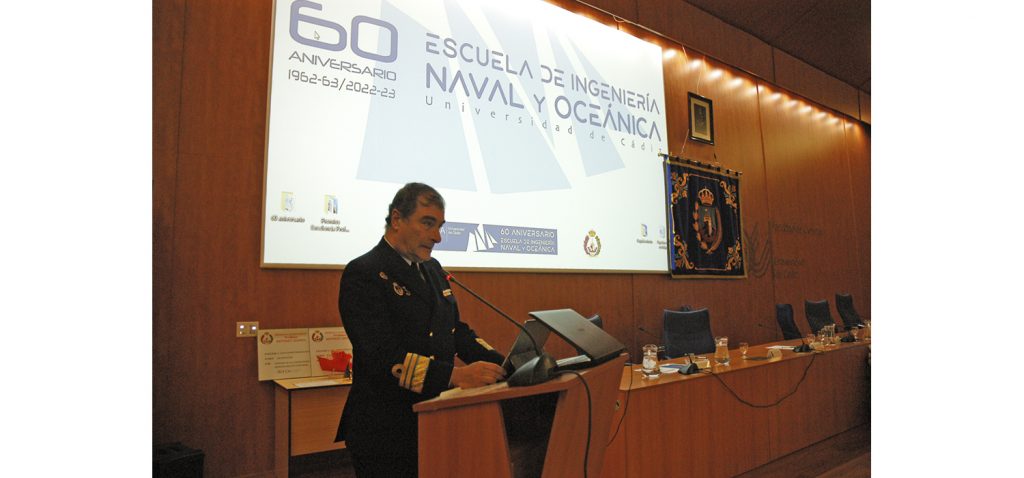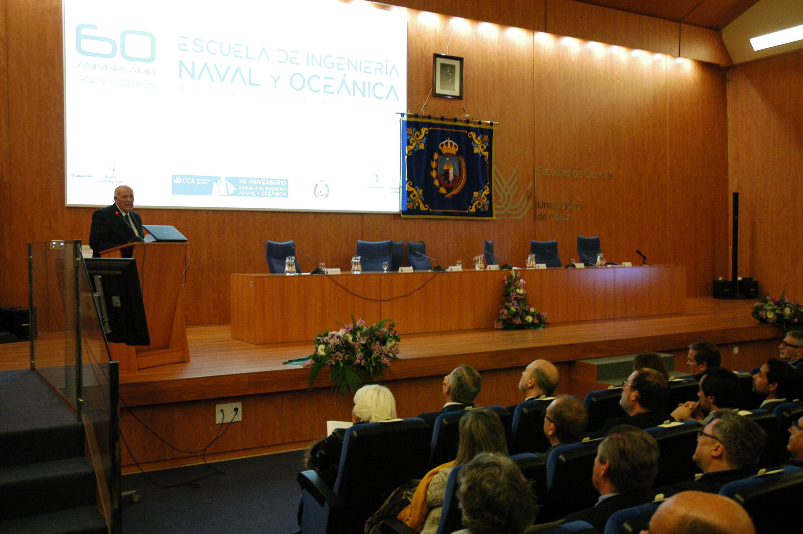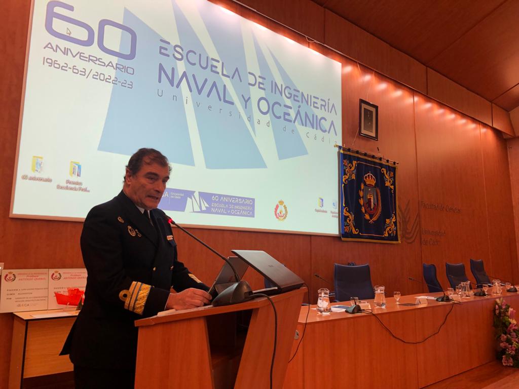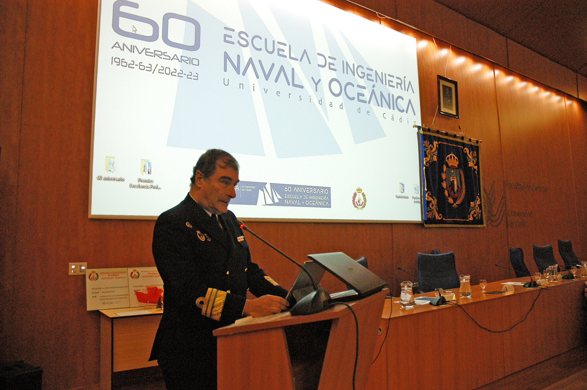 El programa ha incluido la ponencia del vicealmirante del Cuerpo de Ingenieros de la Armada y director de Ingeniería y Construcciones Navales de la Armada, Manuel Antonio Martínez, seguida de la participación de egresados y egresadas relevantes del centro académico, que han compartido información, experiencias y emociones sobre este centro de la UCA con los asistentes. La directora de la Escuela ha introducido al vicealmirante del Cuerpo de Ingenieros de la Armada y director de Ingeniería y Construcciones Navales de la Armada, Manuel Antonio Martínez, al profesor de la Escuela (perteneciente a la 1ª promoción 1962-1966), Antonio Barrios; al vicedecano Territorial del Colegio de Ingenieros Navales y Oceánicos de Andalucía, Jesús Alonso Pérez, al director de la Unidad de Negocio de Subestaciones y Plataformas Offshore Navantia Sinergies, Manuel Braza; así como a la responsable de Gestión Integrada de Programas en Gestión de Seguimiento Operativo de la Dirección de Sistemas y Servicios de Navantia, Bárbara Martín, al consultor industrial, Senior Business & RDI Consultant de Tecnalia Research & Innovation, Juan Ramón Astorga, y al vicepresidente del Clúster Marítimo Naval de Cádiz, Jesús Rodríguez.
