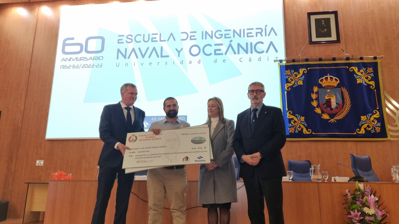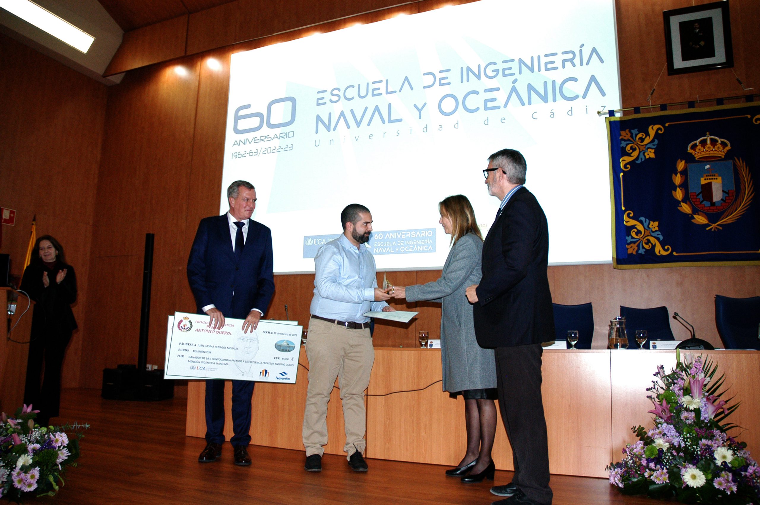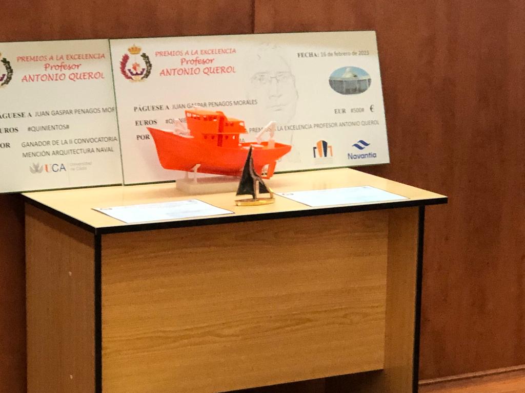 En último lugar, con la presencia de la viuda del profesor Antonio Querol, Begoña Flethes, se ha celebrado la entrega de galardones de la segunda edición de los Premios a la Excelencia Profesor Antonio Querol. Las menciones en Arquitectura Naval e Ingeniería Naval se han concedido a Juan Gaspar Penagos Morales por su trabajo Fin de Grado: Diseño de un pesquero de 14 metros de eslora. Artes menores y pesca del Bonito.