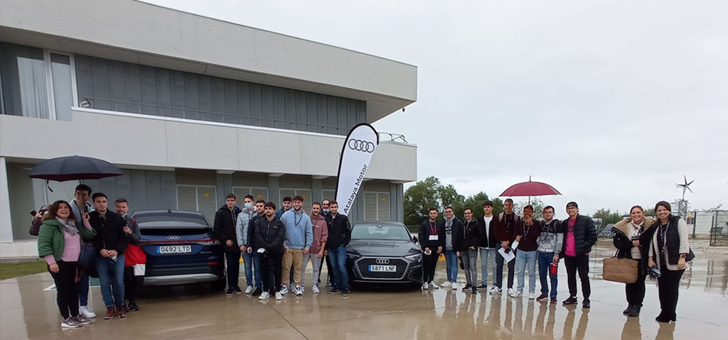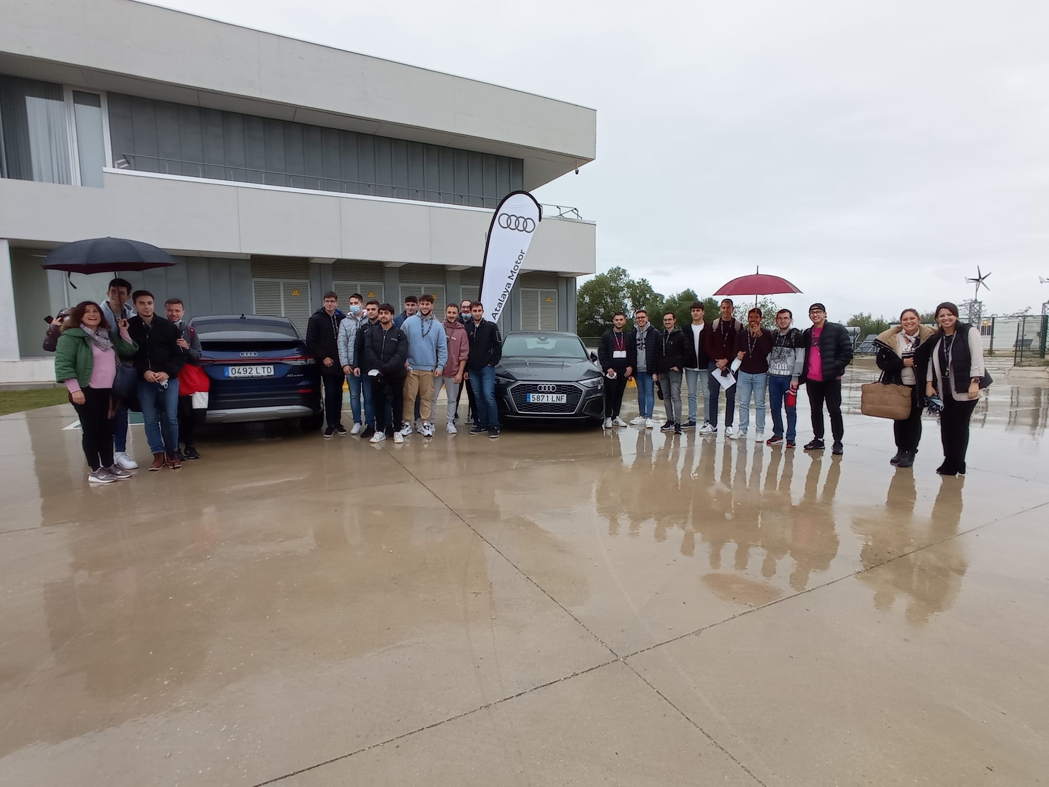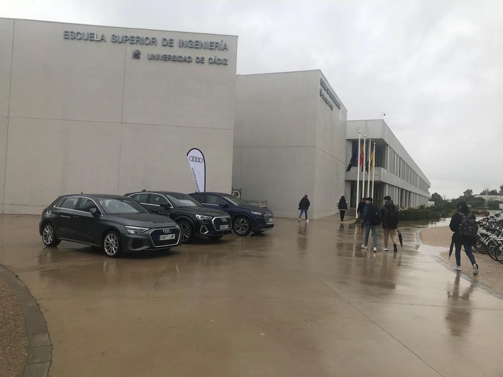La jornada se completa con una muestra y prueba tecnología de vehículos eficientes de Audi (Atalaya Motor), que se desarrolló en el aparcamiento de la Escuela, con un Q4 etron (100% eléctrico), un Q4 e-tron sportback (100% eléctrico,) un Q3 TFSIe (híbrido eléctrico) y un A3 TFSIe (híbrido eléctrico).