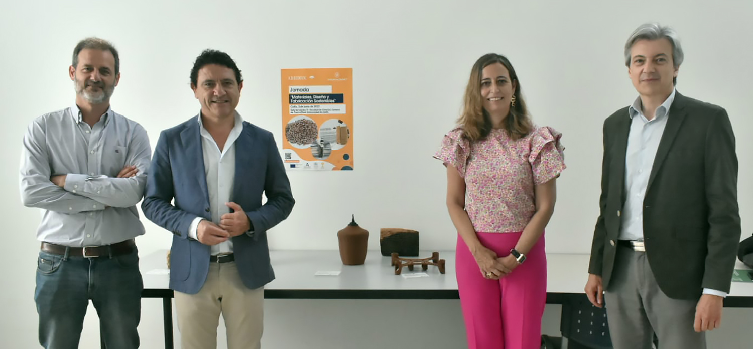La vicerrectora de Política Científica y Tecnológica de la UCA, María Jesús Mosquera, y el delegado territorial de Desarrollo Sostenible de la Junta de Andalucía en Cádiz, Daniel Sánchez, han asistido hoy a la jornada ‘Materiales, diseño y fabricación sostenibles’ en la Facultad de Ciencias del Campus universitario de Puerto Real. Este encuentro dirigido a empresas muestra el contenido del proyecto Adicork, para la valorización y la proyección del sector del corcho en el ámbito de la I+D+i y de una producción sostenible.