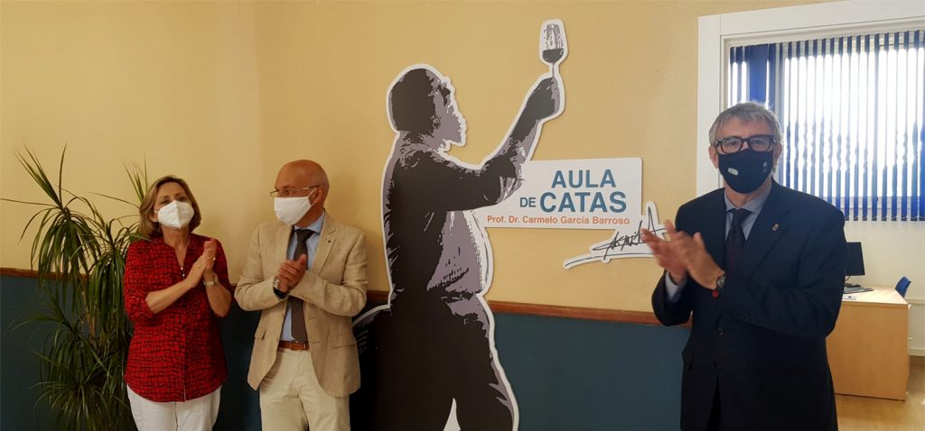El rector de la UCA ha subrayado en su intervención que “cada día que pasa nos acordamos más del profesor Carmelo García Barroso. Esta Facultad de Ciencias de la UCA que le homenajea en el día de hoy no sería lo que es sin el trabajo abnegado, la calidad docente y la excelencia científica de personas como él”. Francisco Piniella ha recordado que el nuevo aulario del Campus de Jerez llevará su nombre, como también lo hará desde hoy el aula de Catas de su Facultad de Ciencias. Ha destacado del catedrático de la UCA, fallecido en 2020, que en él “confluían todas las virtudes de un buen universitario: rigor, excelencia científica, compromiso social, capacidad divulgativa y una bonhomía que lo convertían en un ser especial, en una persona excepcional, en un docente admirado por su alumnado, en un investigador con una producción científica de excelencia, en un enólogo de referencia internacional, en un innovador en sus estudios sobre la uva y sus usos potenciales, en un defensor orgulloso y sin cortapisas del patrimonio vitivinícola y del vino de Jerez”.