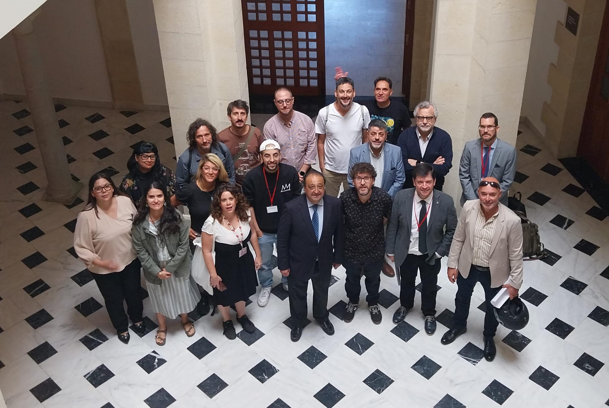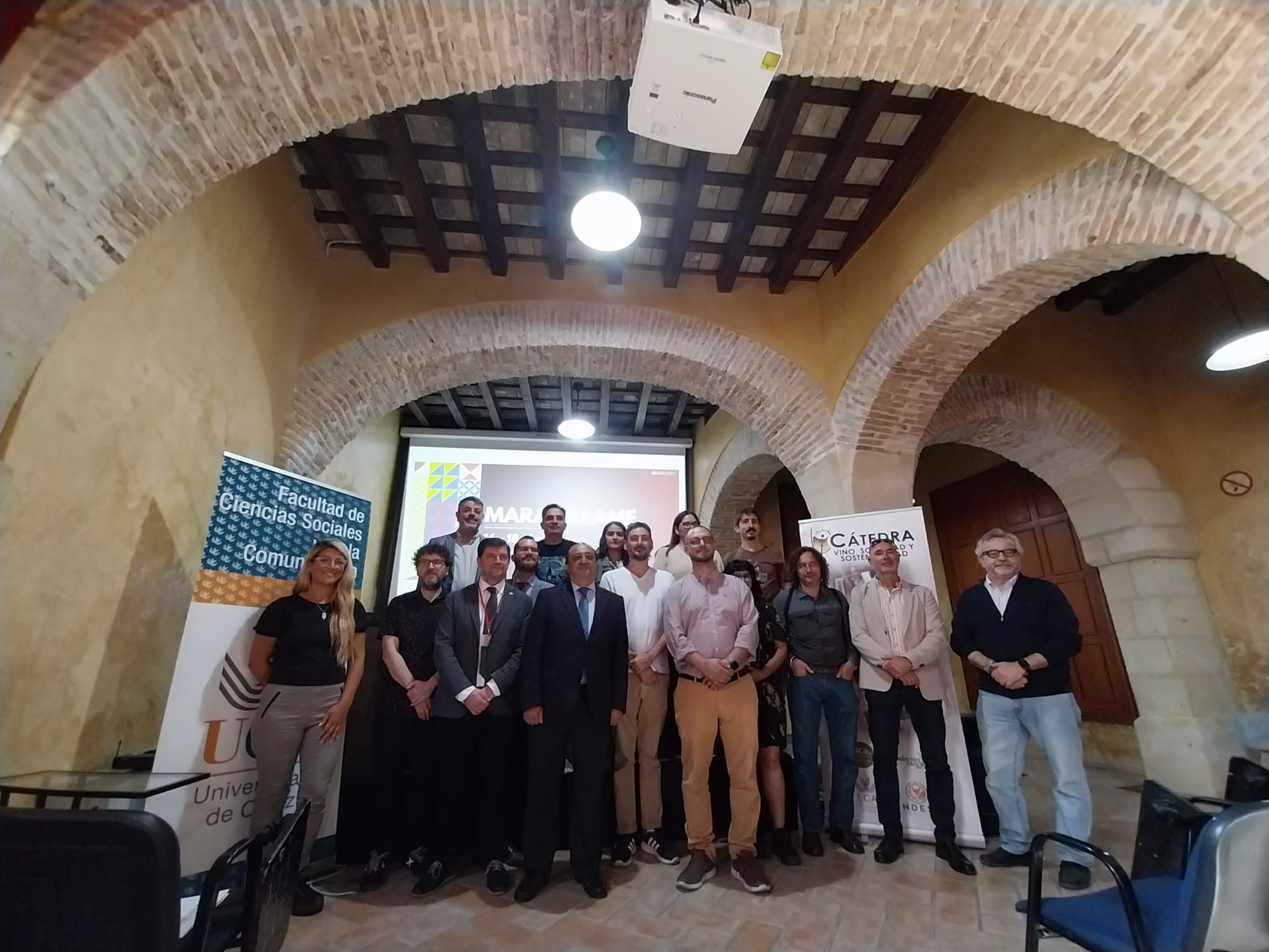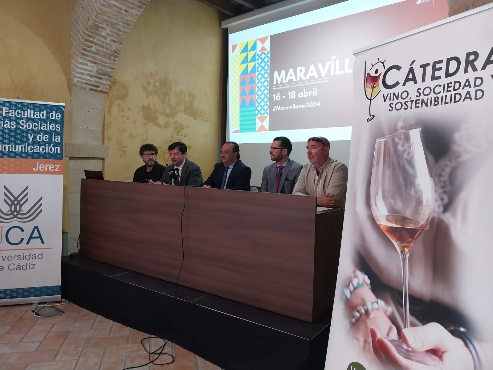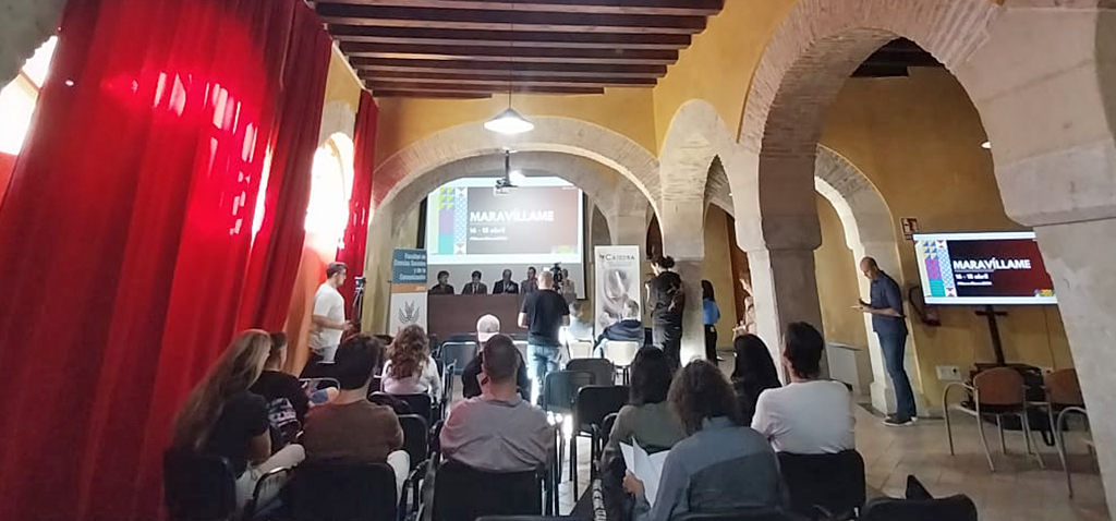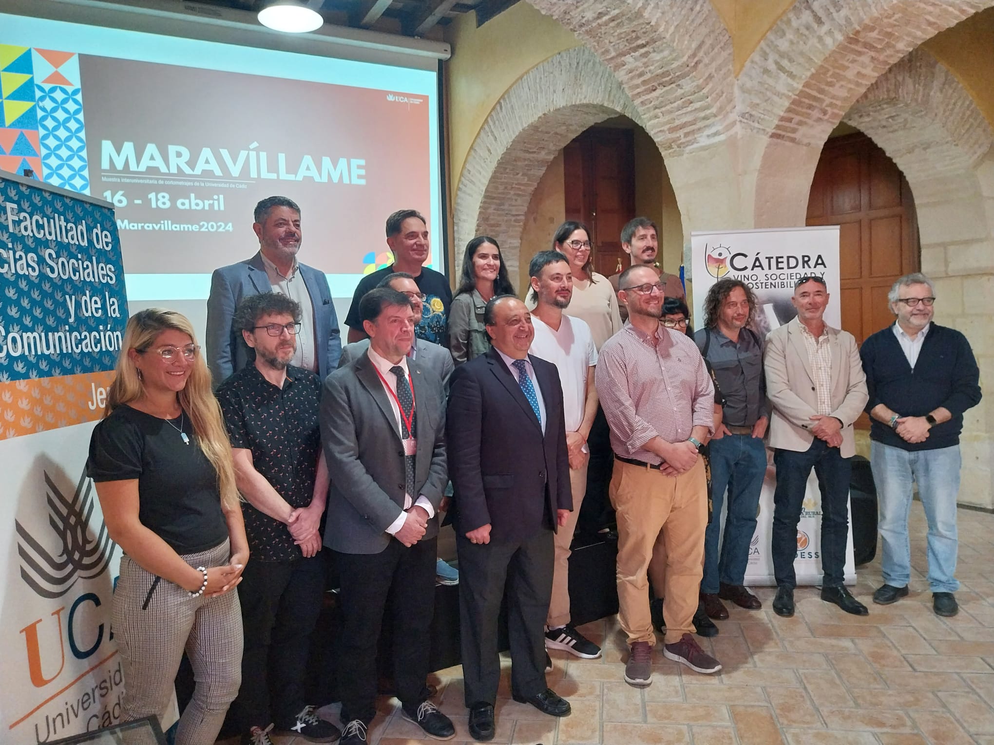 La Facultad de Ciencias Sociales y de la Comunicación de la Universidad de Cádiz, en colaboración con el Ayuntamiento de Jerez, la Diputación de Cádiz, el Instituto de Desarrollo Social Sostenible (INDESS) y la Asociación CineCádiz, inaugura hoy la I Muestra Interuniversitaria de Cortometrajes Maravíllame en Jerez. Su decano, José Antonio López, junto al director de la Muestra, Alfonso Rodríguez, y el concejal delegado de Cultura del Ayuntamiento de Jerez, Francisco Zurita, han presentado los detalles de su programación en el Palacio de Villapanés. El acto ha contado con la presencia del director de cine y padrino del evento, Juan Miguel del Castillo, y del director del Instituto Universitario de Investigación para el Desarrollo Social y Sostenible (INDESS), Manuel Arana.
