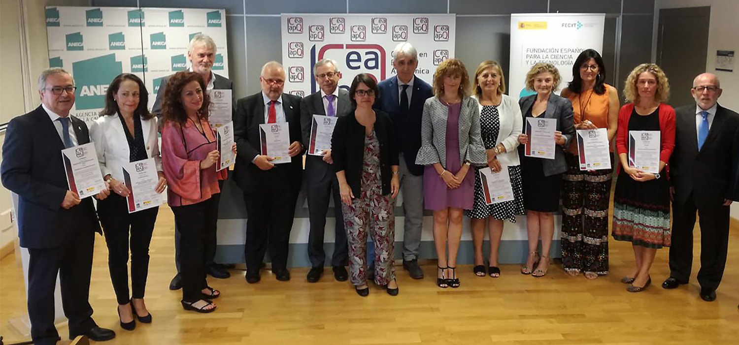 Los responsables de las 10 colecciones publicadas por editoriales universitarias y científicas españolas, públicas y privadas, que han obtenido el sello de Calidad CEA-APQ en su segunda convocatoria son: Monografías de Humanidades (Universidad de Alcalá), Colección de Bioética (Universitat de Barcelona), Monografías. Historia y Arte (Universidad de Cádiz), Sociales (Universidad de Cantabria), Estudios Políticos (Centro de Estudios Políticos y Constitucionales), Anejos ExenplariaClassica (Universidad de Huelva); DirCOM (Editorial UOC), Arquitectura, textos doctorado del IUACC (Universidad de Sevilla), Història (Universitat de València) e Història i Memòria del Franquisme (Universitat de València).